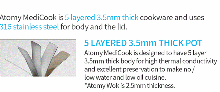 - Được thiết kế đặc biệt để có lớp vỏ dày 5 lớp thép không rỉ STS 316 có độ dày 3.5mm. Đặc biệt, dẫn nhiệt độ cao và nhanh mà thức ăn vẫn không bị hỏng khi có ít nước hoặc dầu ăn trong nồi.