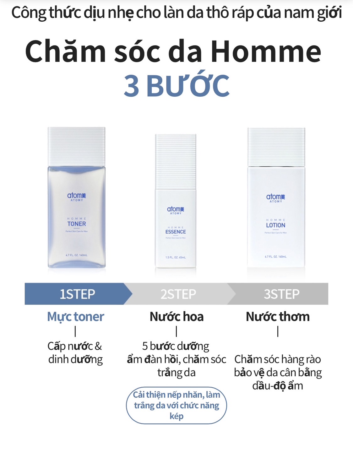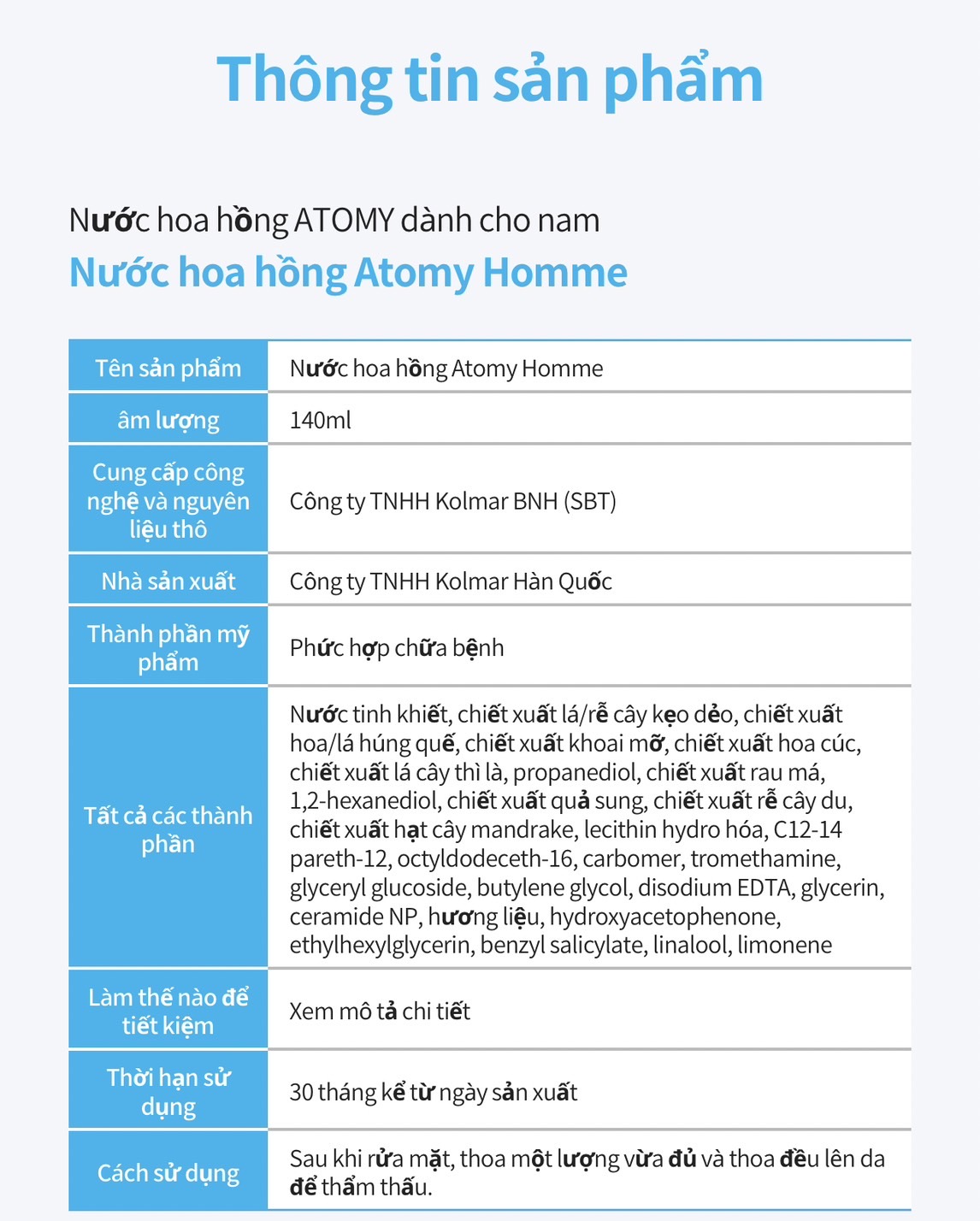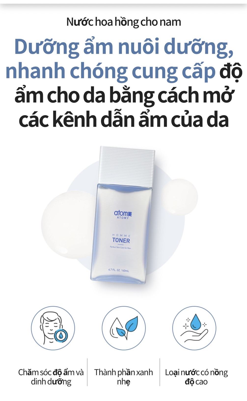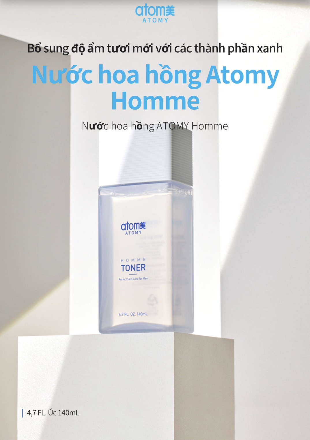 Nước dưỡng hoa hồng cung cấp độ ẩm, dinh dưỡng và cân bằng da với thành phần dịu nhẹ đặc biệt dành cho nam (140 ml) - Atomy Homme Toner For Men - 애터미 옴므 토너 - Атоми Тонер для Мужчин