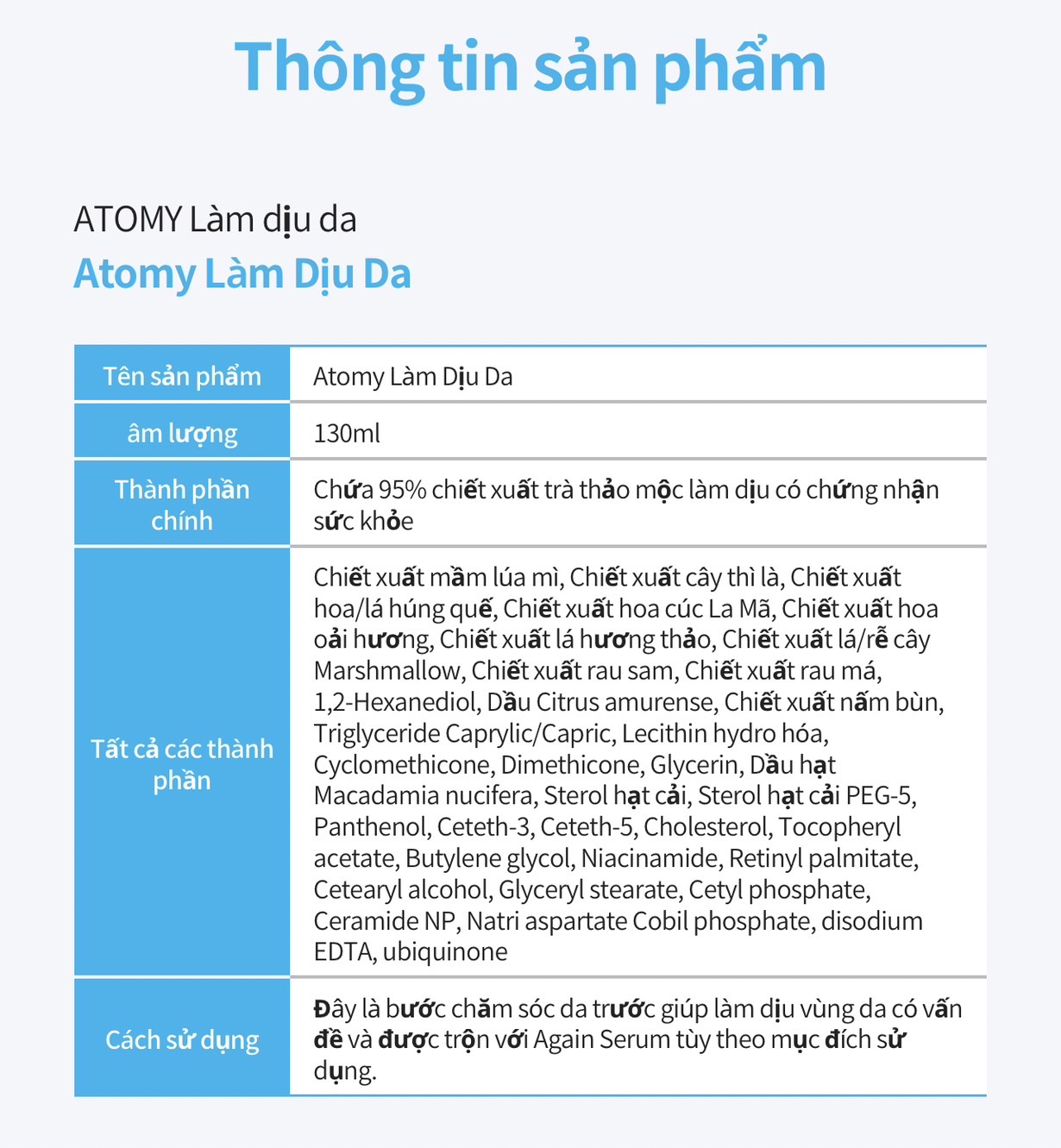 Nước làm dịu và cân bằng da dành cho da hỗn hợp Atomy Calming Care, duy trì làn da căng bóng