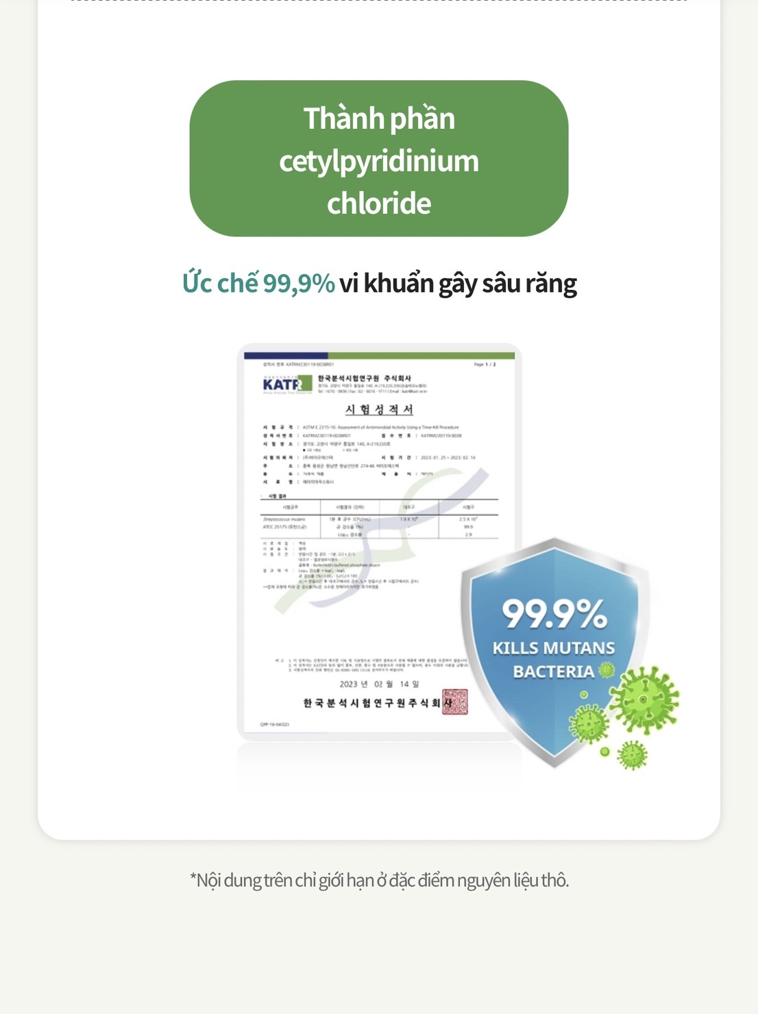 🩸 Thành phần của cetylpyridinium clorua: Ức chế 99,9% vi khuẩn Proteobacteria, nguyên nhân gây ra viêm miệng