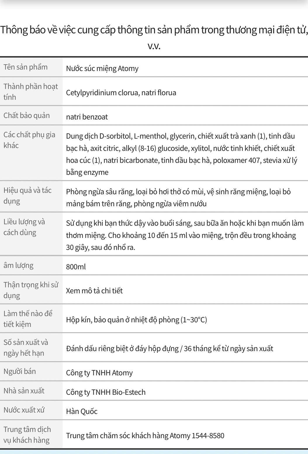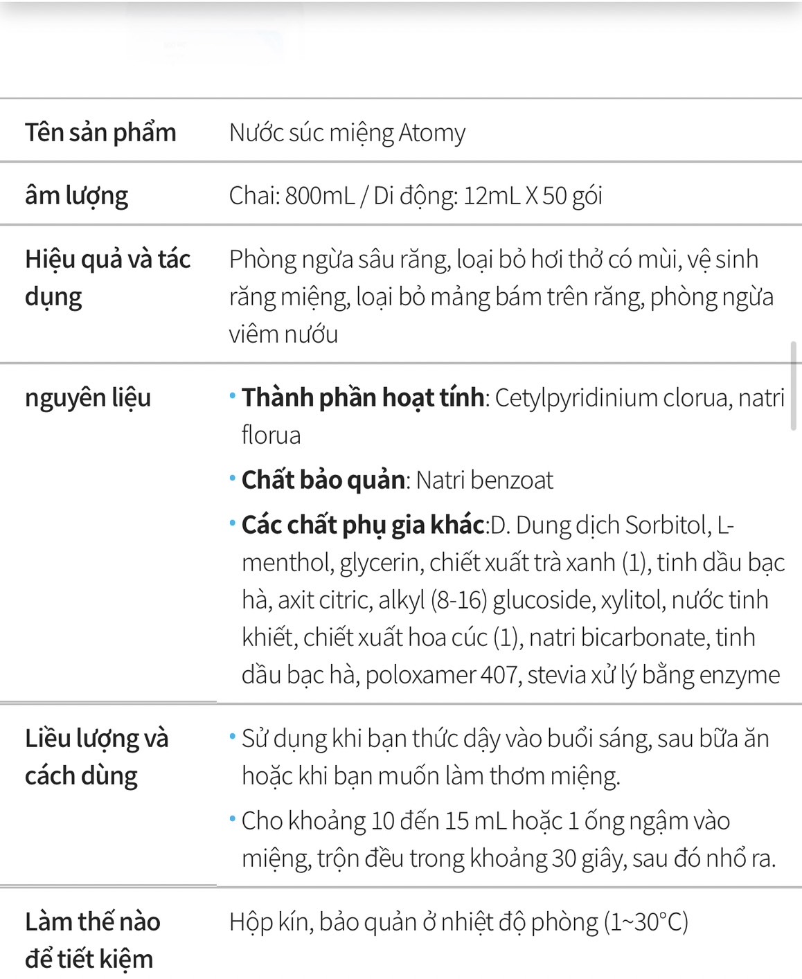 ⭐️ Nhãn hiệu: Atomy, xuất xứ: Hàn Quốc