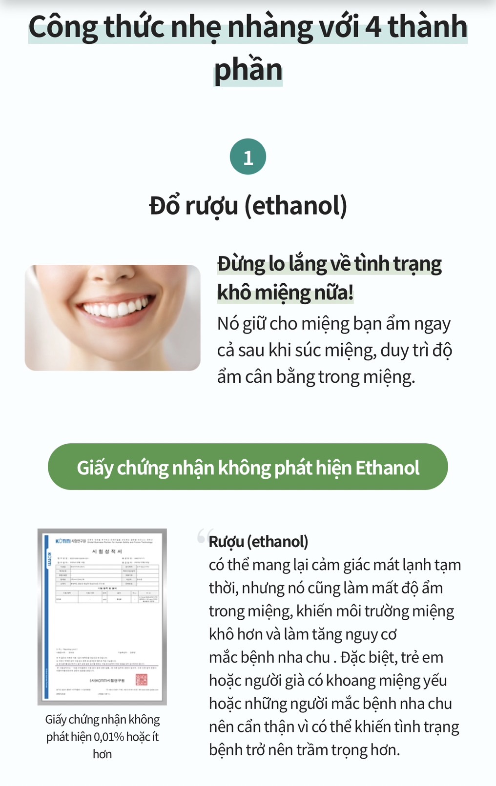 ❌️ Không chứa cồn (ethanol)- Nó giữ ẩm bên trong miệng ngay cả khi vừa cười vừa giữ cân bằng độ ẩm trong miệng.