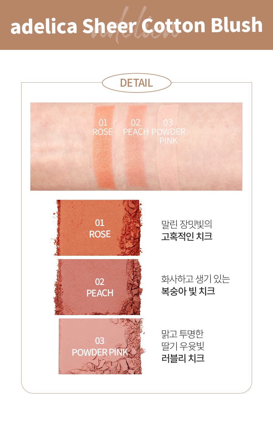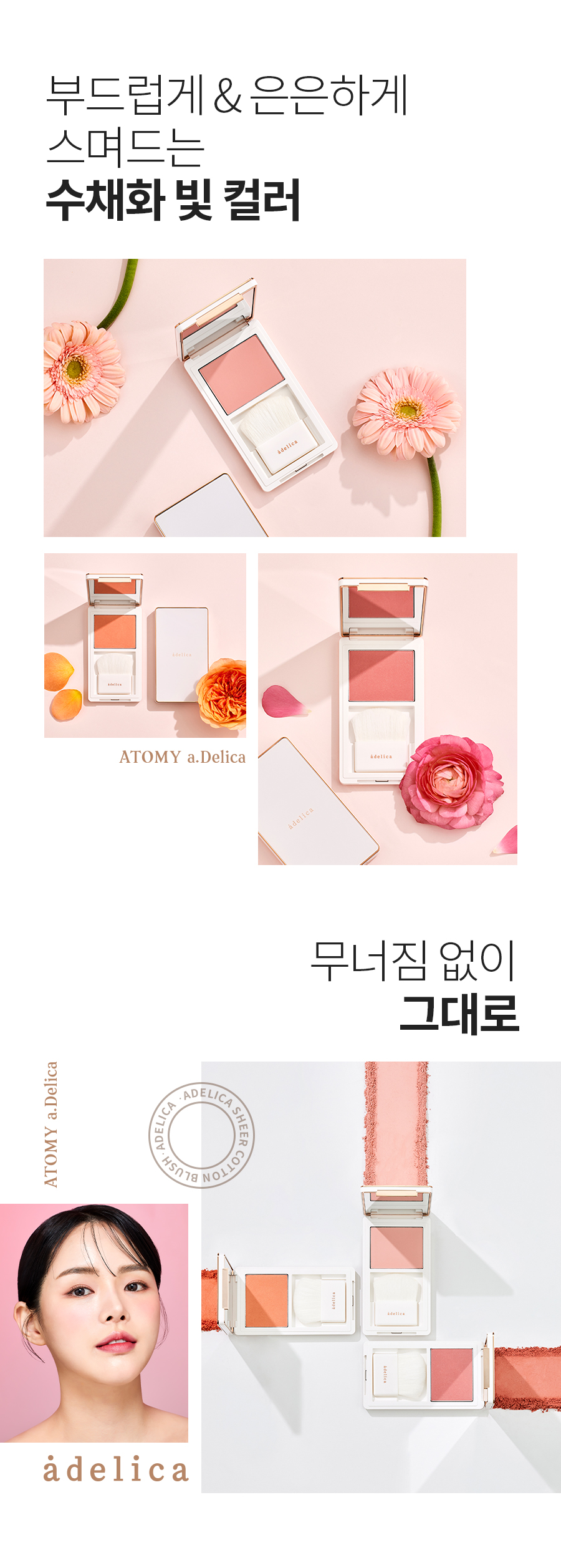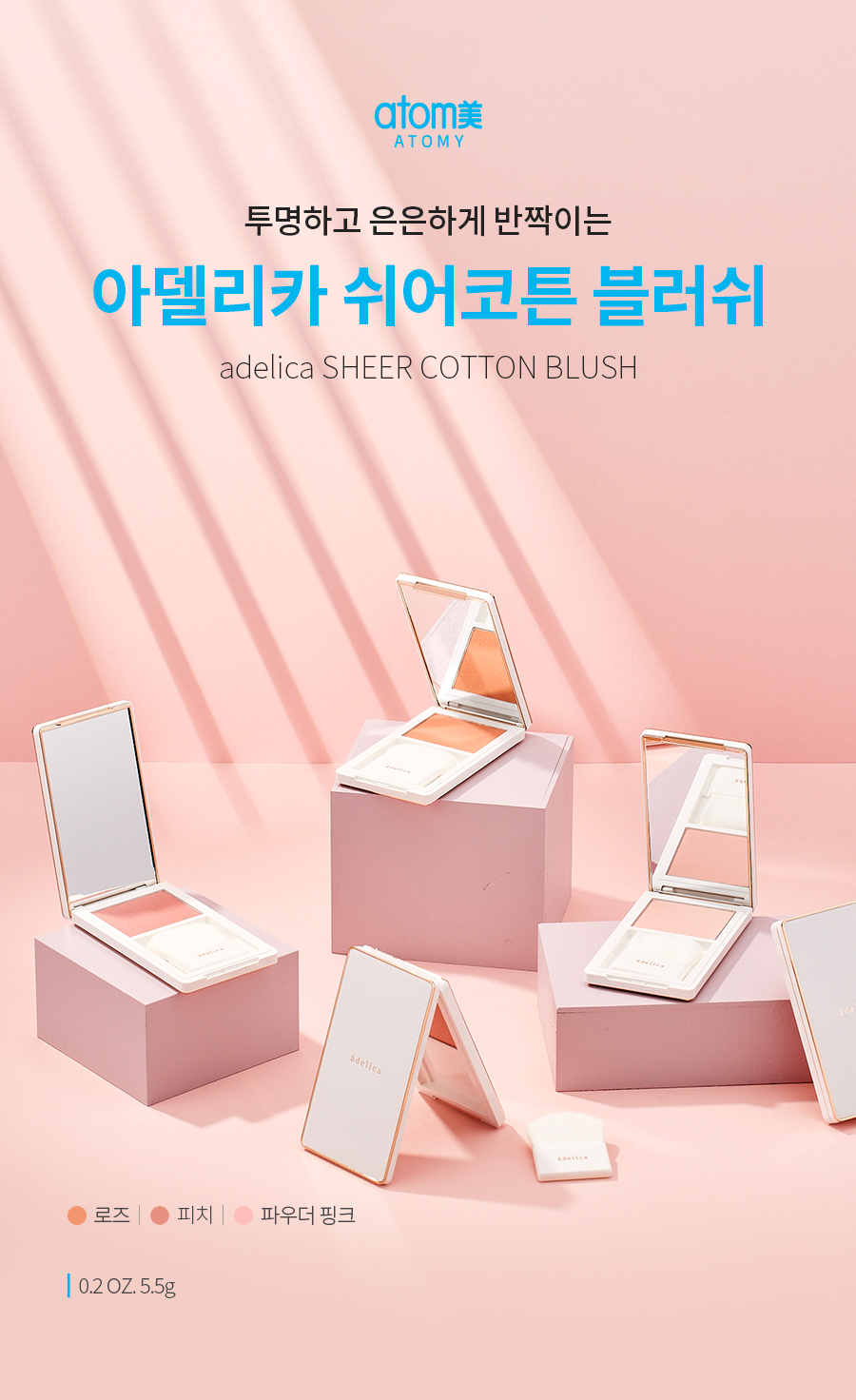 Phấn má hồng Atomy Adelica Sheer Cotton Blush 아델리카 쉬어코튼 블러쉬 - 피치
