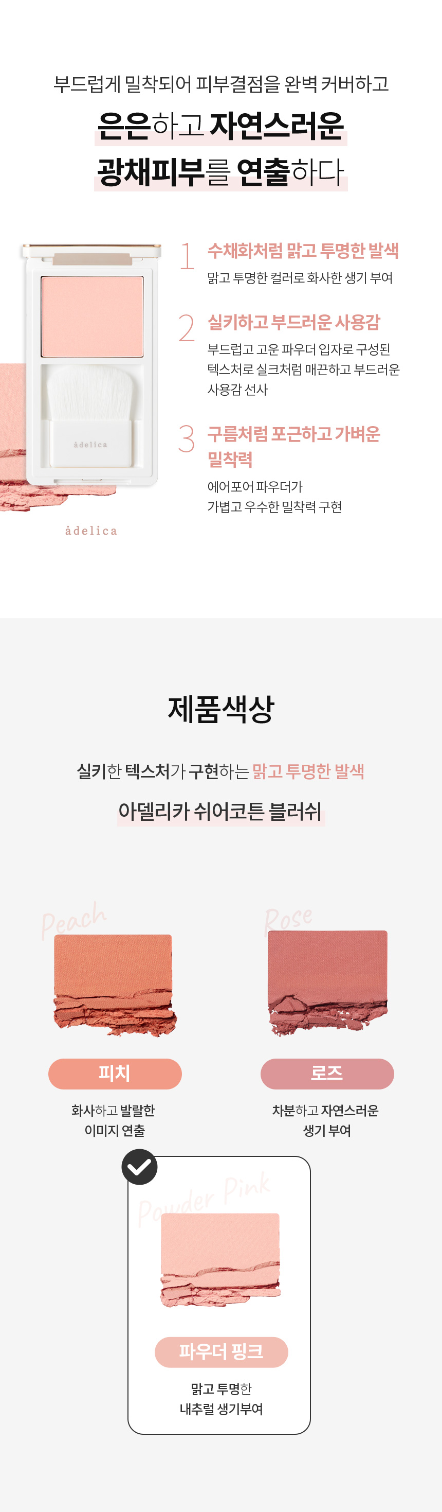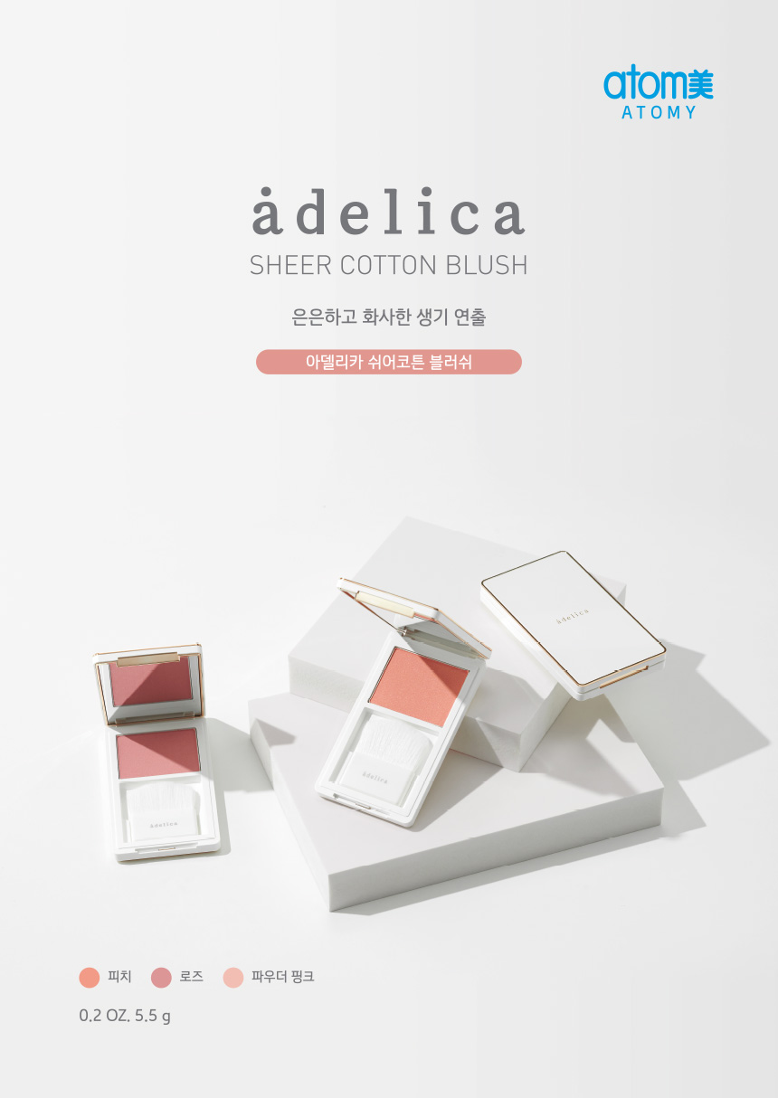 Phấn má hồng Atomy Adelica Sheer Cotton Blush 아델리카 쉬어코튼 블러쉬 - 피치