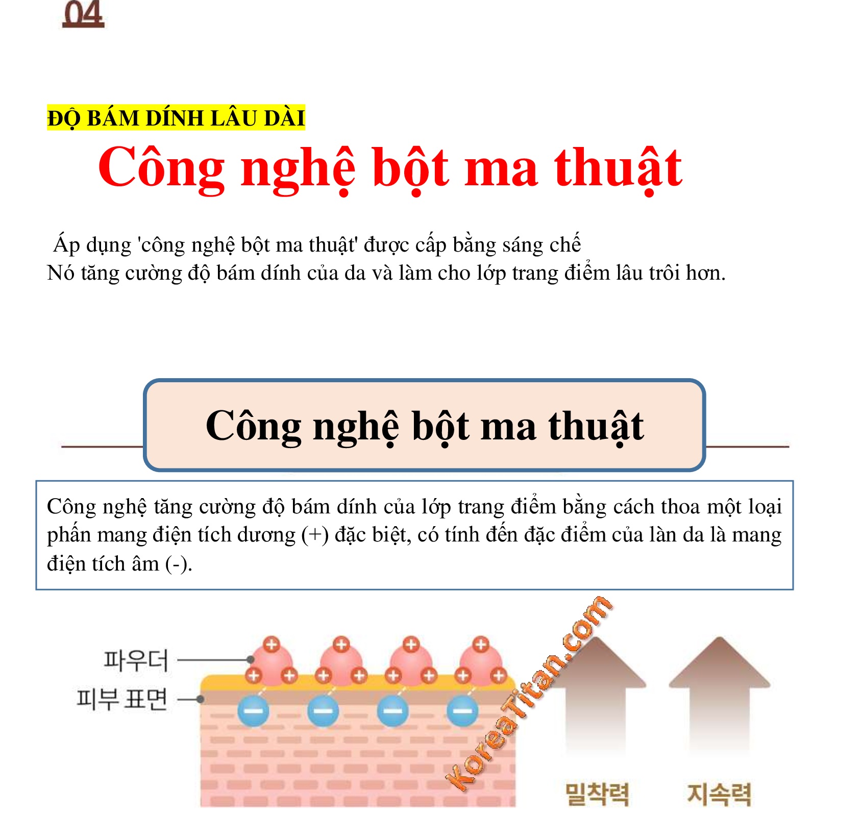 3. LÂU TRÔI Công nghệ phấn mới cho độ bám dính chặt + độ che phủ lâu dài mà không bị thâm.