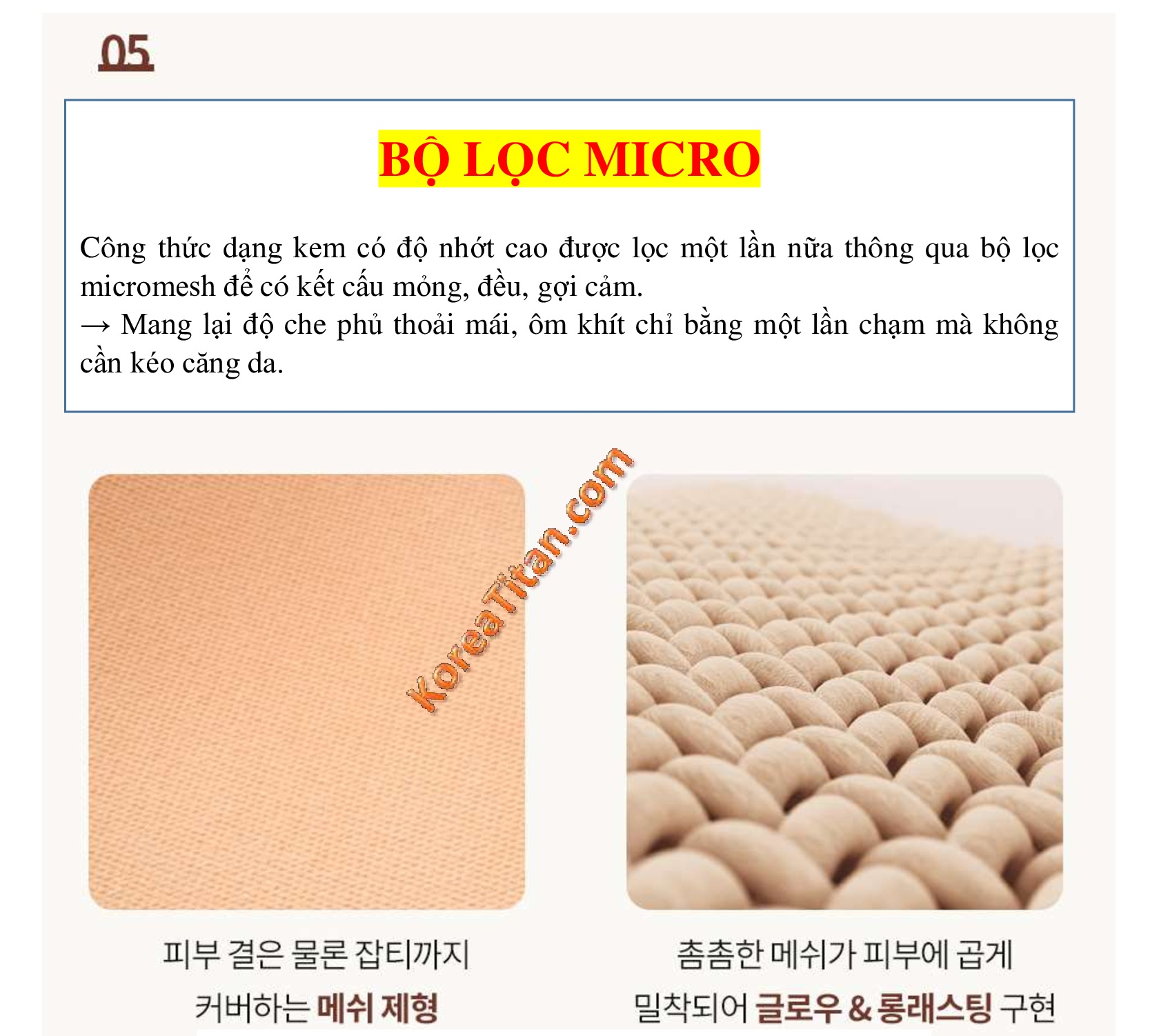 6. BỘ LỌC LƯỚI MICRO Kết cấu mỏng, đều, gợi cảm tạo cảm giác dễ chịu trên da mà không cần kéo căng.