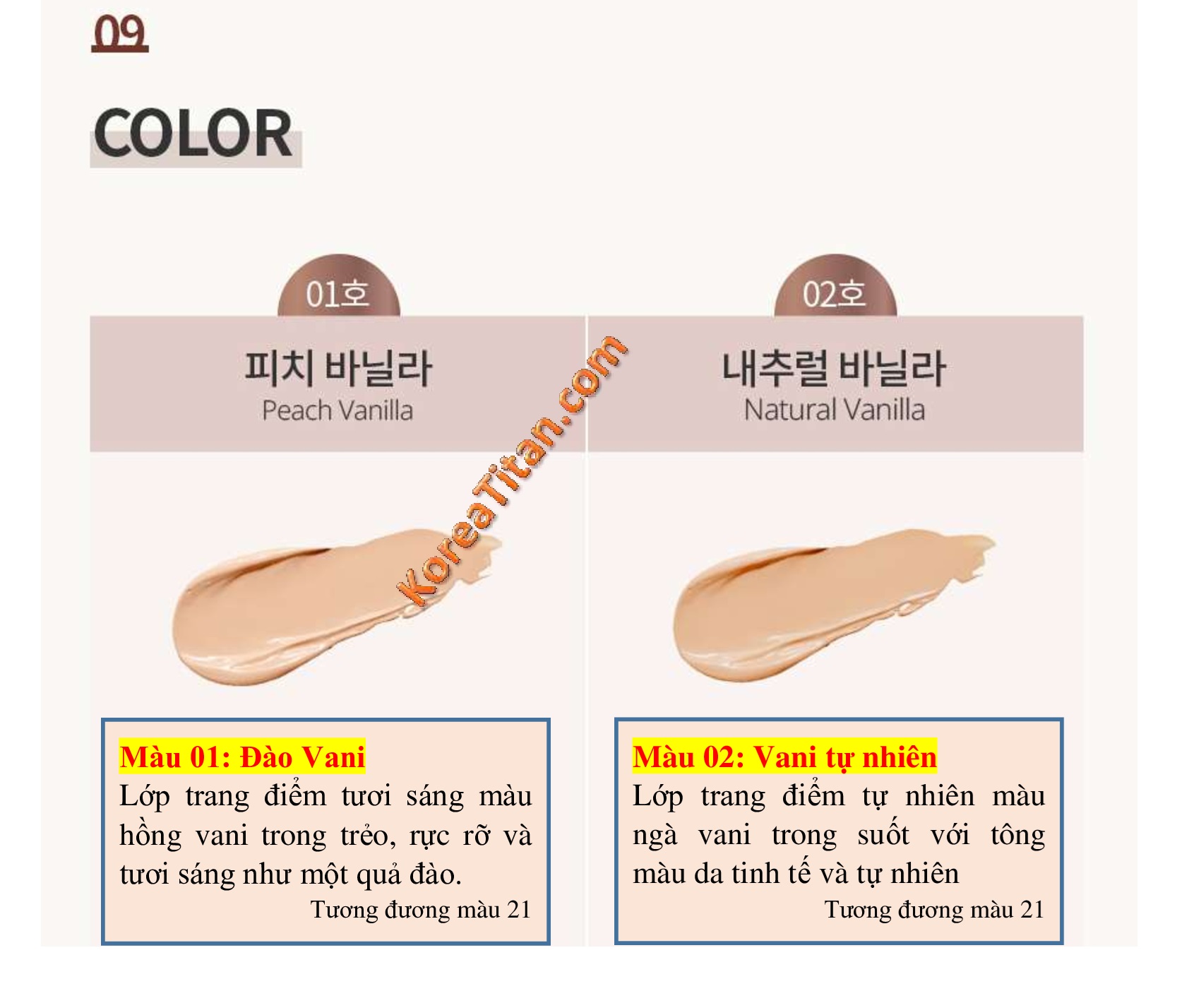 👌 Số 02 내추럴 바닐라 Vani tự nhiên/ Natural Vanilla: Màu Vani màu ngà trong suốt cho làn da tinh tế, tự nhiên " Khuyến nghị số 21 cho cách trang điểm tự nhiên"