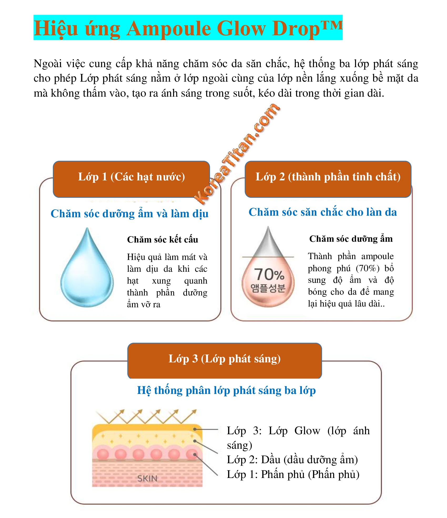 4. Thành phần ampoule phong phú (70%) cung cấp dưỡng ẩm, làm dịu và săn chắc da tỏa sáng suốt cả ngày.