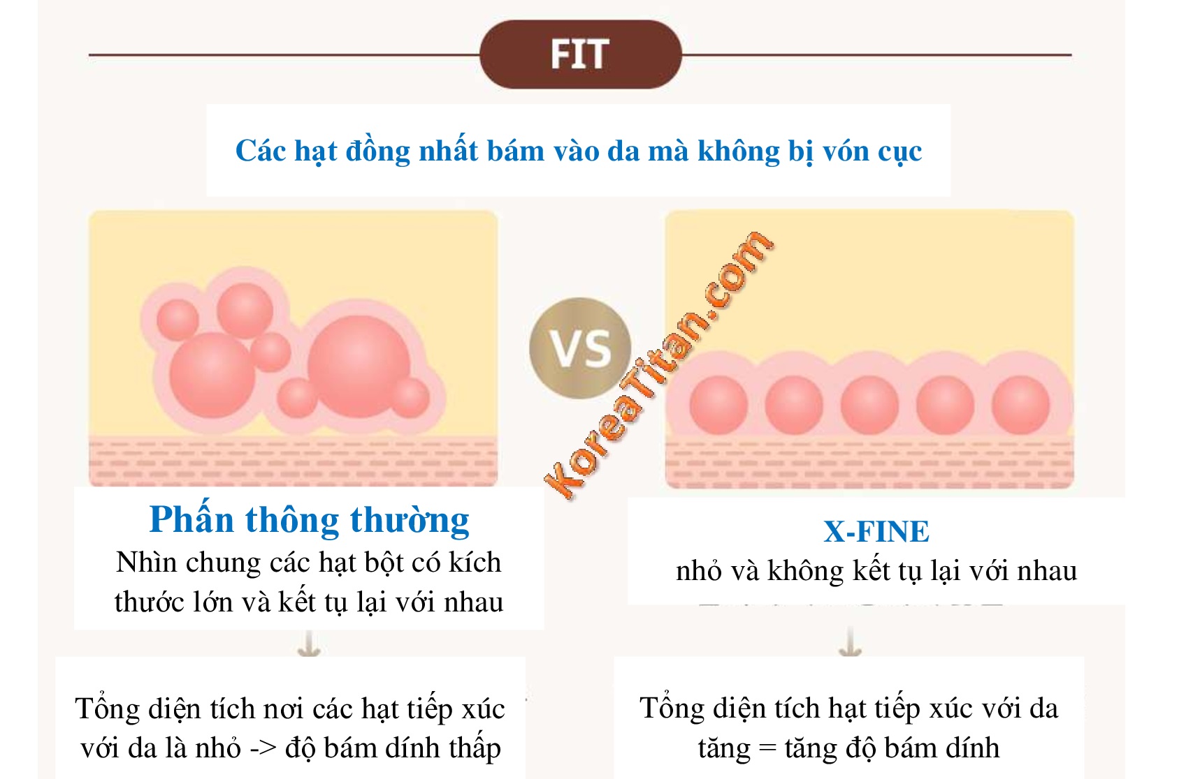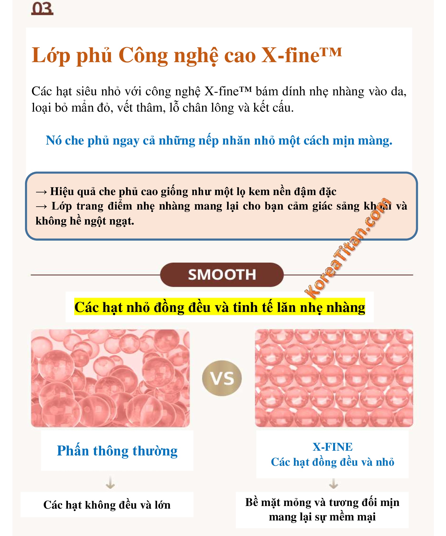 2. Sản phẩm cao cấp: Bột vi mô X-fine™ phủ một lớp mỏng và đều lên da.