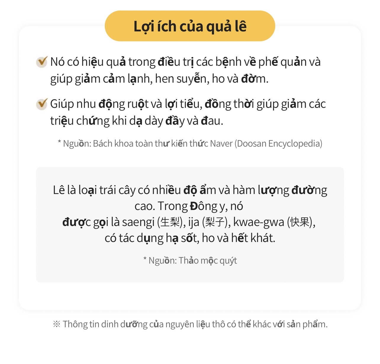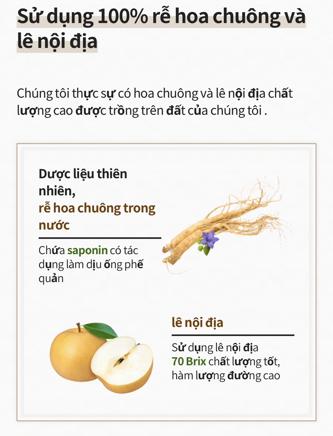 🍐 Sử dụng 100% hạt hoa chuông và lê nội địa Hàn
