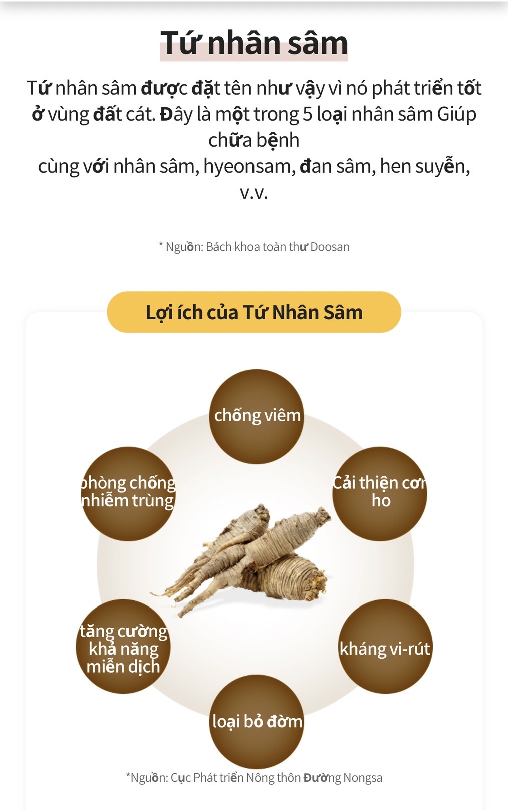 🍐 Các thành phần phụ trợ được lựa chọn kỹ lưỡng: • Chứa phức hợp cô đặc Adenophora Triphylla Root đã được cấp bằng sáng chế