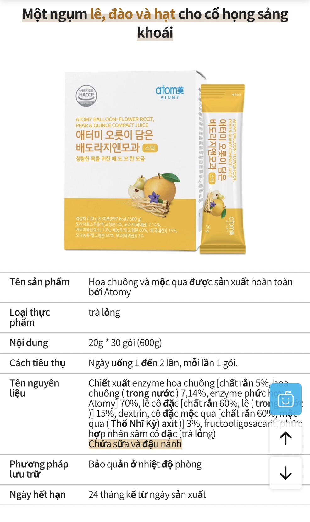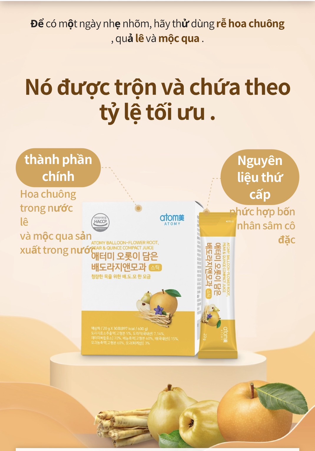 𝗧𝗵𝘂̛̣𝗰 𝗽𝗵𝗮̂̉𝗺 𝗯𝗮̉𝗼 𝘃𝗲̣̂ 𝘀𝘂̛́𝗰 𝗸𝗵𝗼̉𝗲 𝗰𝗵𝗼 𝗯𝗲̣̂𝗻𝗵 𝘃𝗶𝗲̂𝗺 𝘁𝗵𝗮𝗻𝗵 𝗾𝘂𝗮̉𝗻,𝗯𝗼̂̉ 𝗽𝗵𝗼̂̉𝗶, 𝘁𝗿𝗶̣ 𝗵𝗼 từ rễ hoa chuông, nước lê,sâm của Atomy Bellflower Root, Pear & Quince Compact Juice