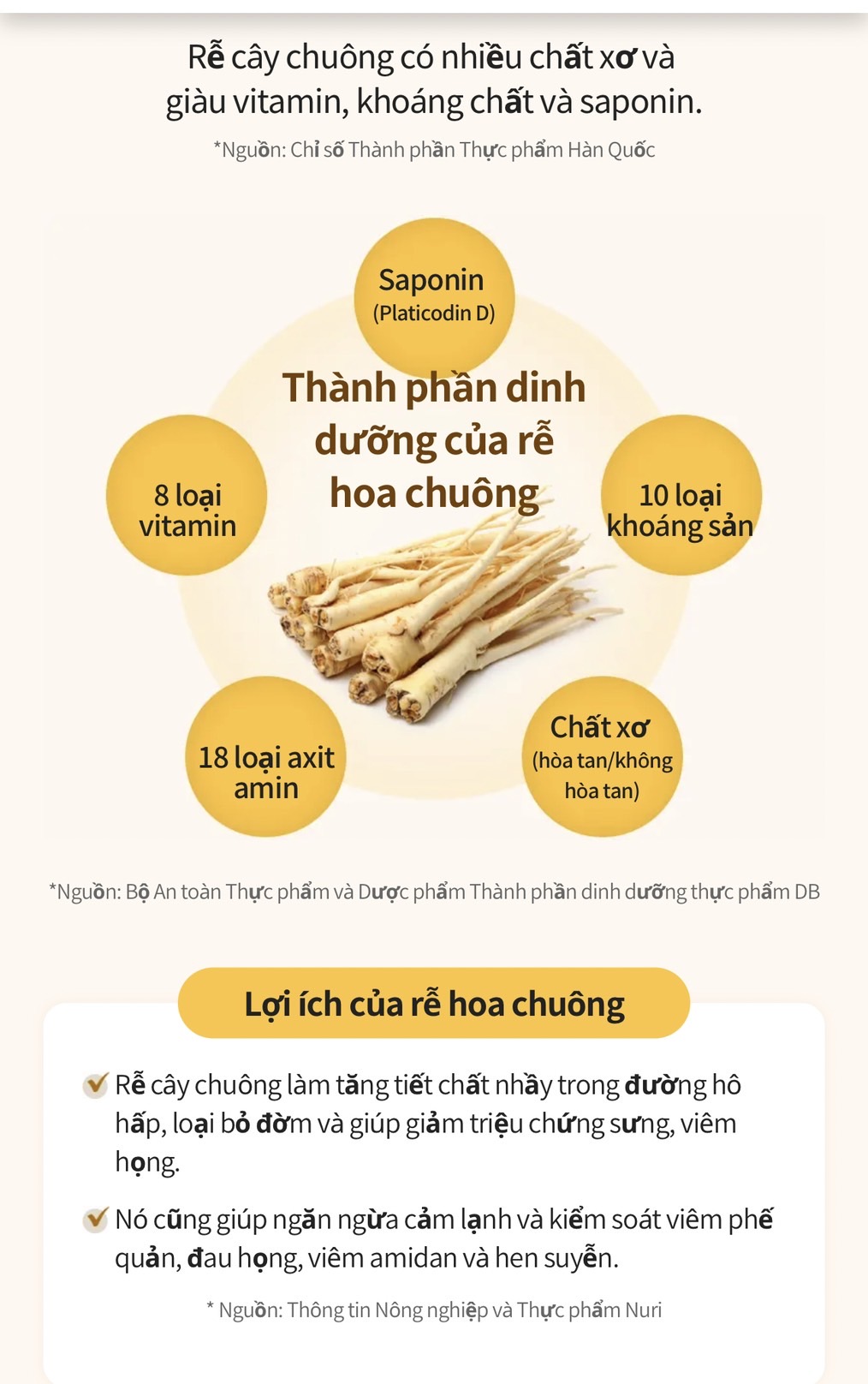 🍐 Rễ hoa chuông sấy khô Hàn Quốc được xử lý enzyme trước để tăng hiệu quả chiết xuất