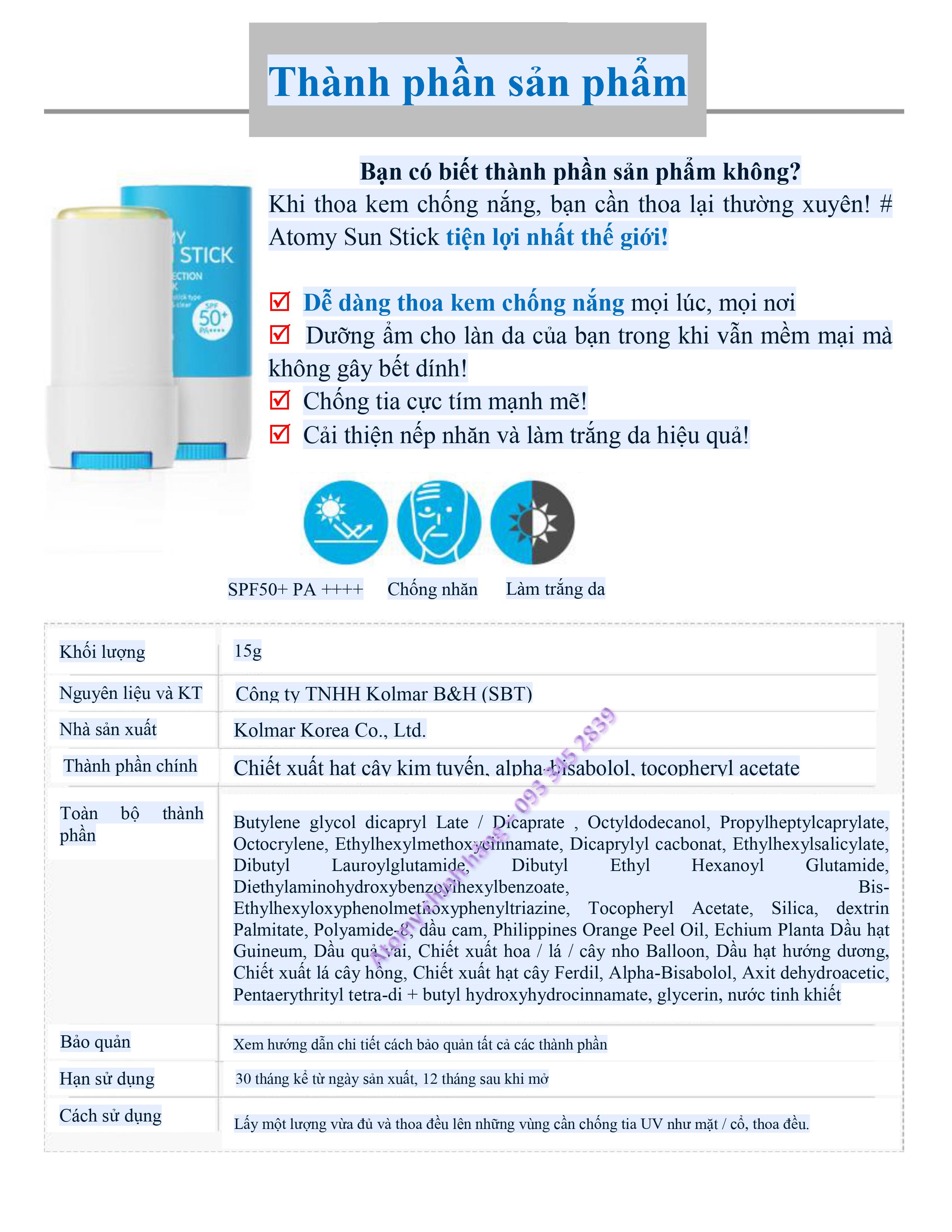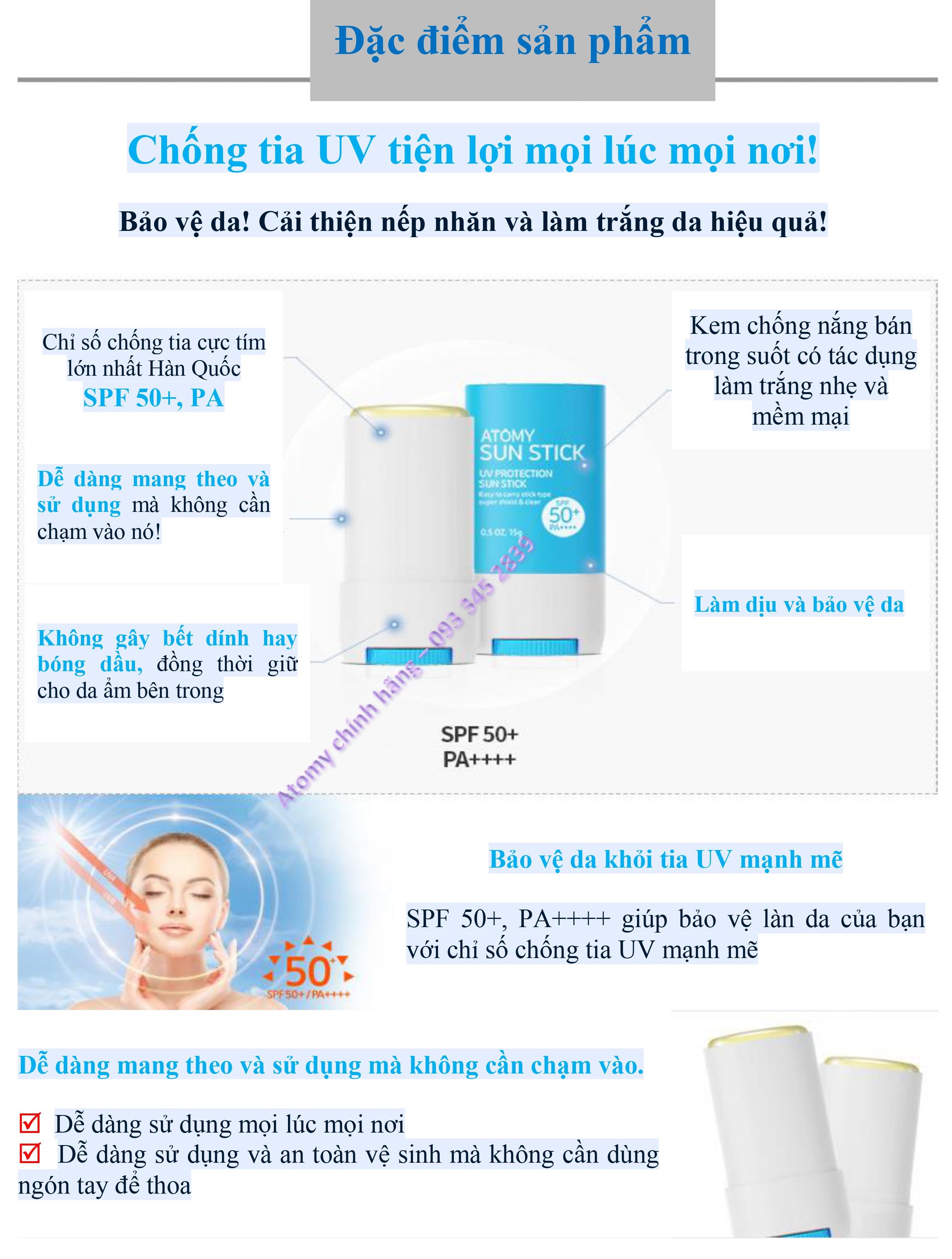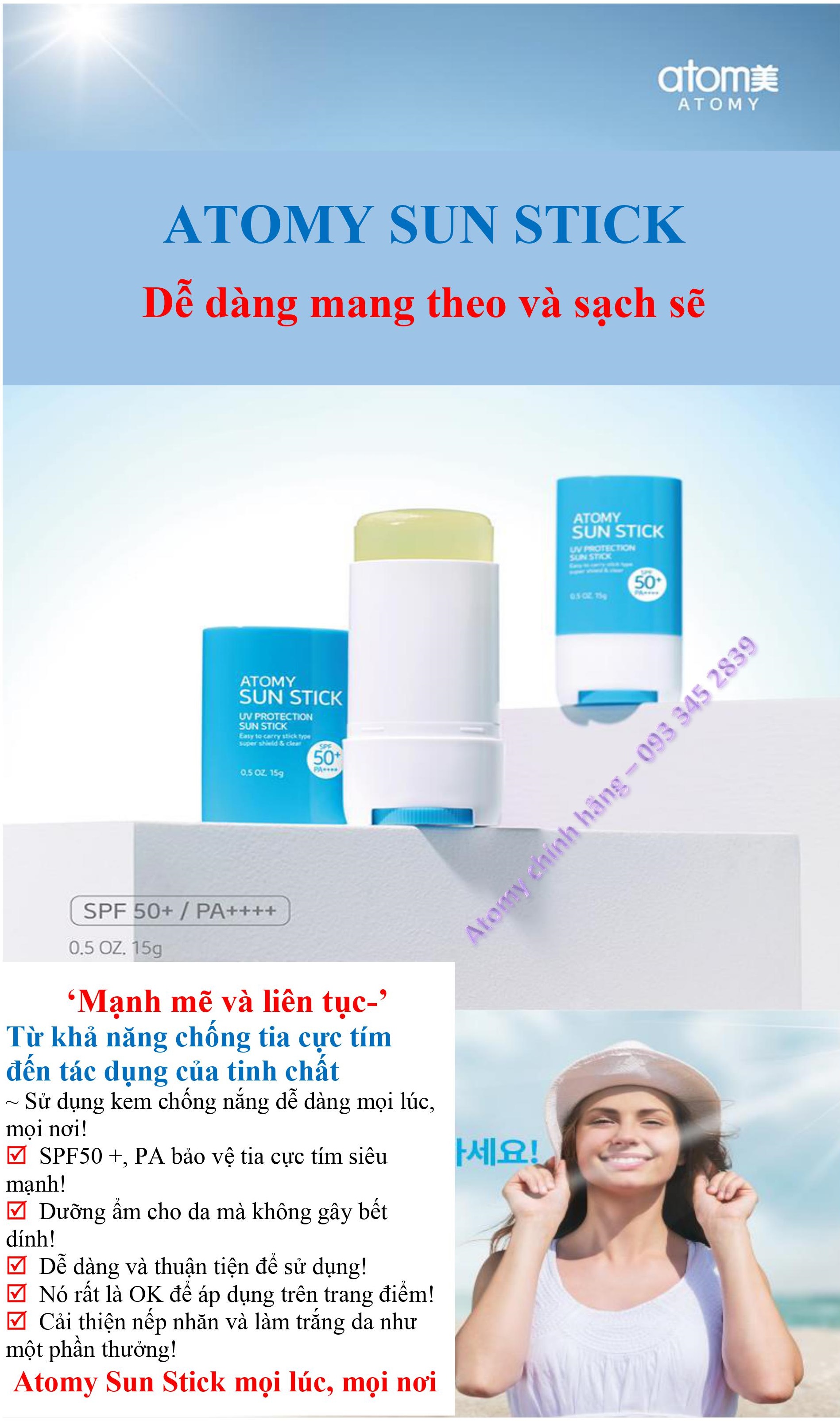 - Lại thêm 1 sản phẩm có khả năng chống nắng cực kỳ tốt cới chỉ số SPF50+ PA++++ của Atomy. Nhưng lần này không phải dưới dạng kem nữa mà là ở dạng sáp lăn.