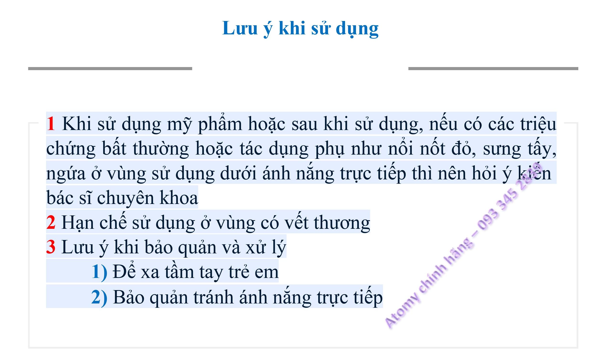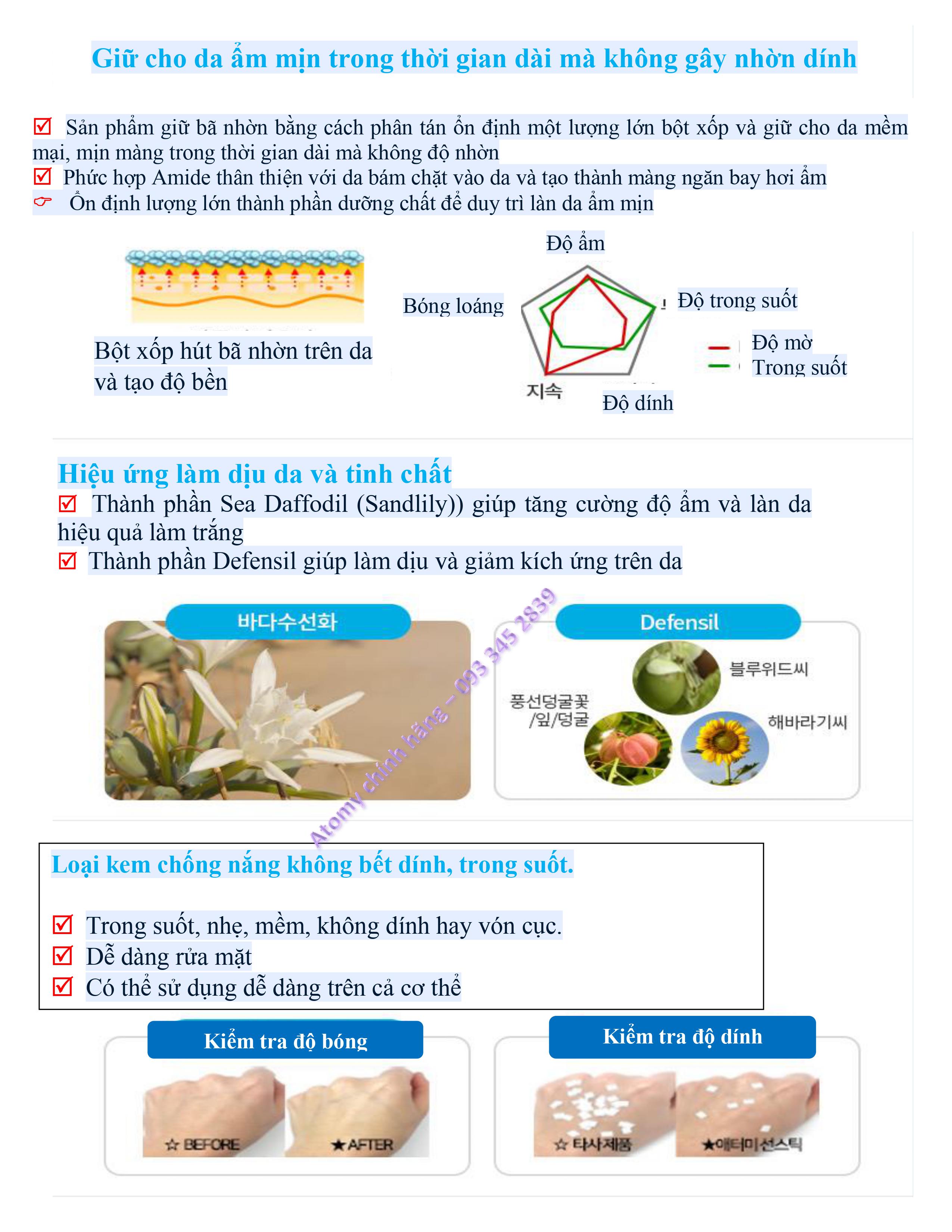 - Vẫn là dạng chống nắng vật lý với thành phần chính là Zinc oxide và Titanium dioxide. Atomy có 3 sản phẩm chống nắng đều ở dạng chống nắng vật lý vì có nhiều ưu điểm và lành tính đối với da hơn.
