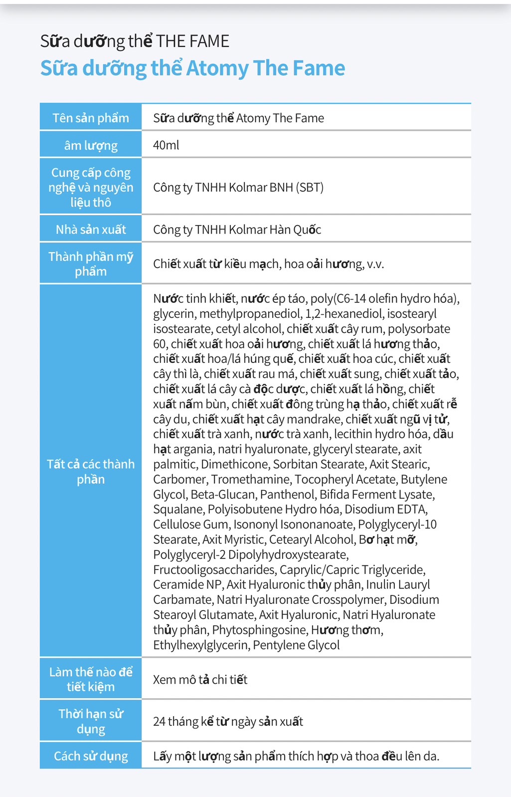 6.Atomy Body Rich Lotion 40ml: dưỡng thể