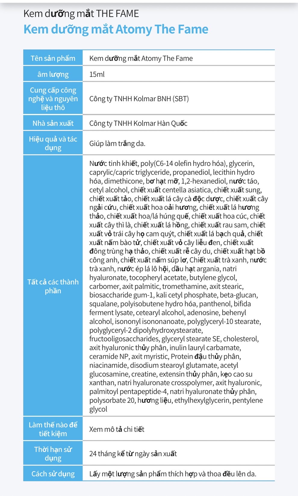 4. Atomy eye cream 15ml: kem dưỡng chống nhăn vùng mắt