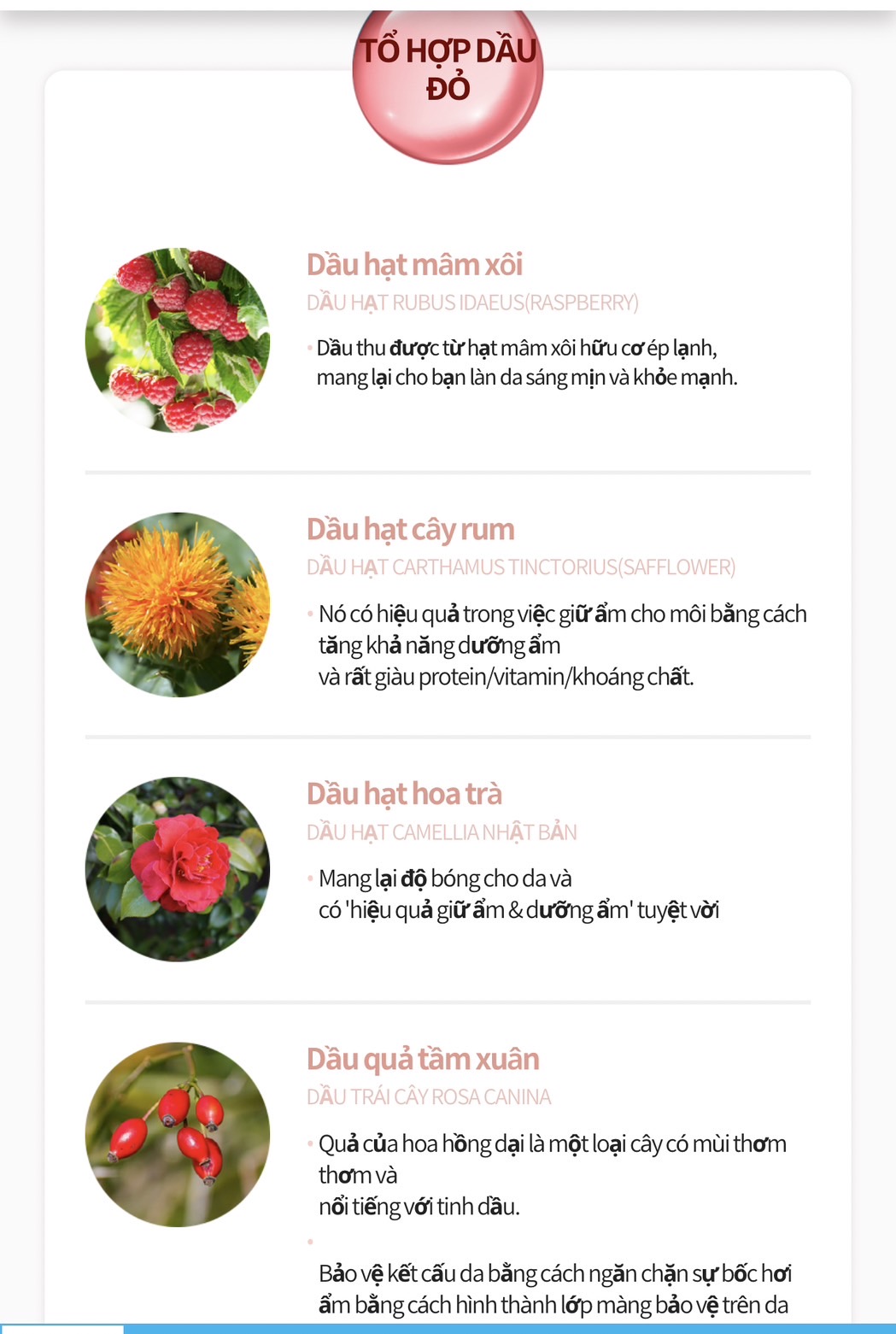 Dầu hạt thực vật giàu vitamin phục hồi đôi môi và 4 phức hợp dầu đỏ: