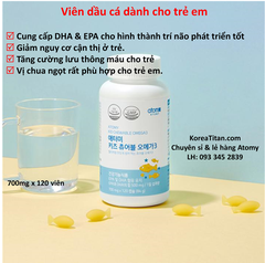 Viên dầu cá cho trẻ em chứa hàm lượng cao DHA và EPA phát triển trí não thông minh, sáng mắt và hoàn thiện hệ tim mạch, dạng viên nhai chua ngọt, không mùi tanh (700mg x 120 viên) - Atomy Kids Chewable Omega 3 - 애터미 키즈 츄어블 오메가3 - Atomy Kids Жевательные Омега-3