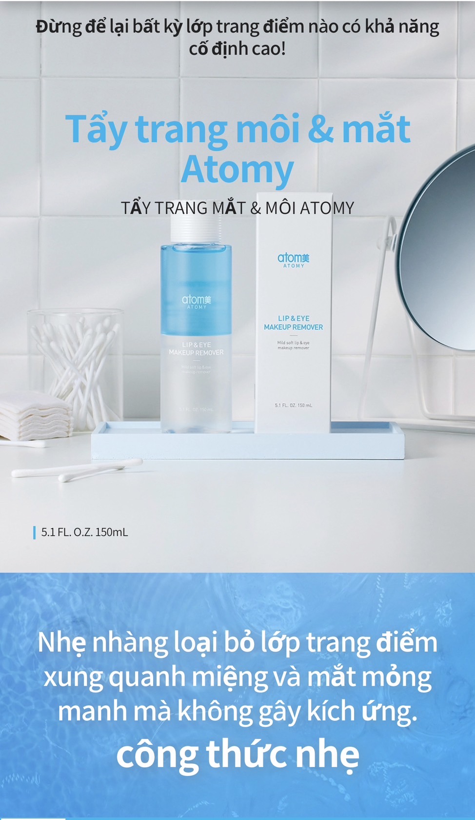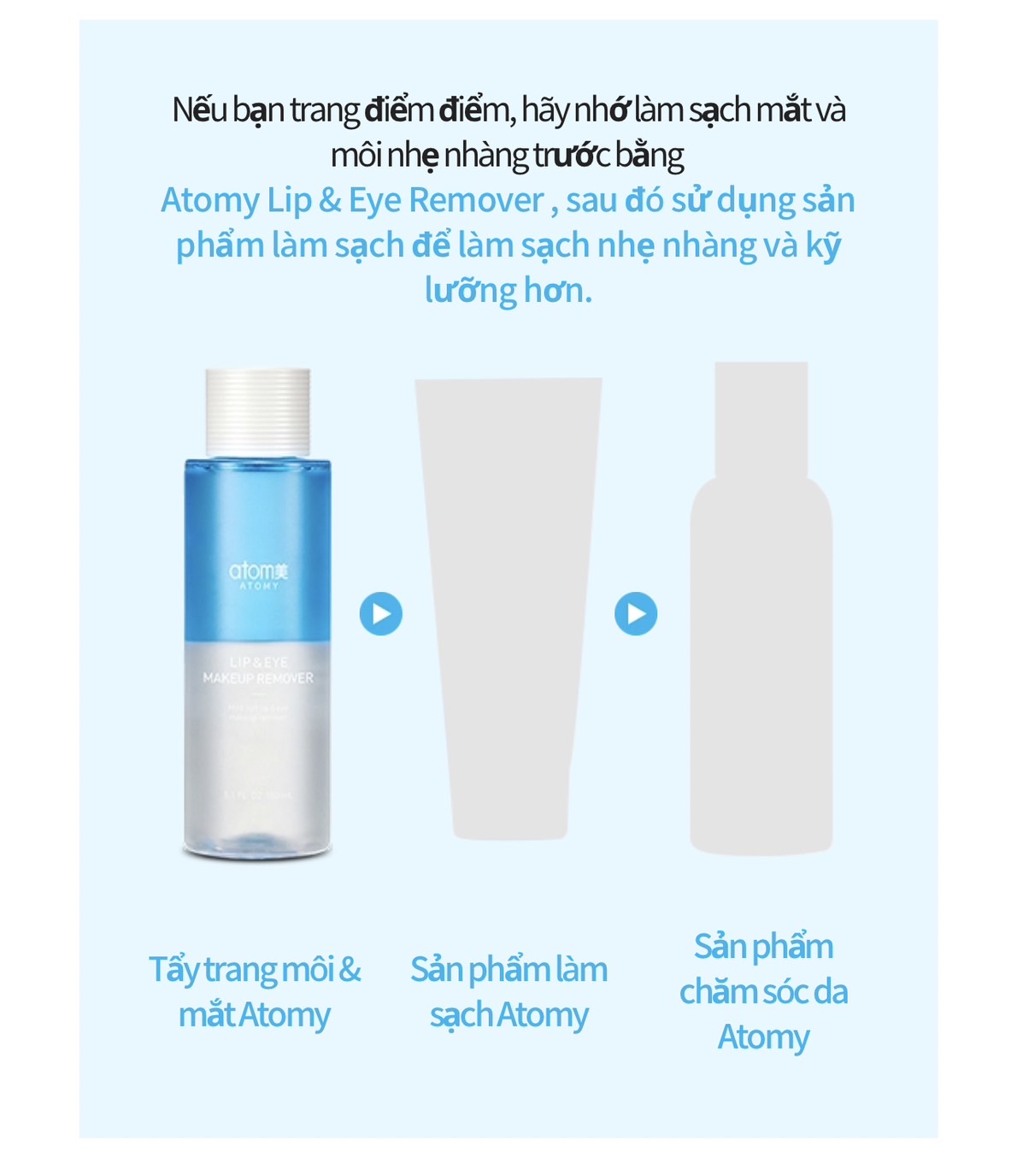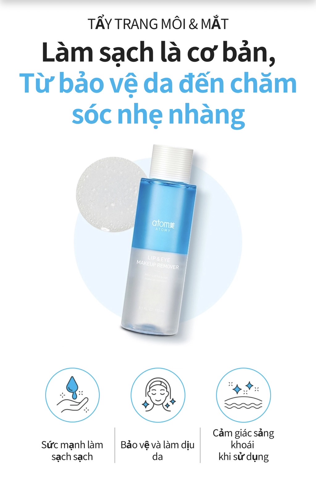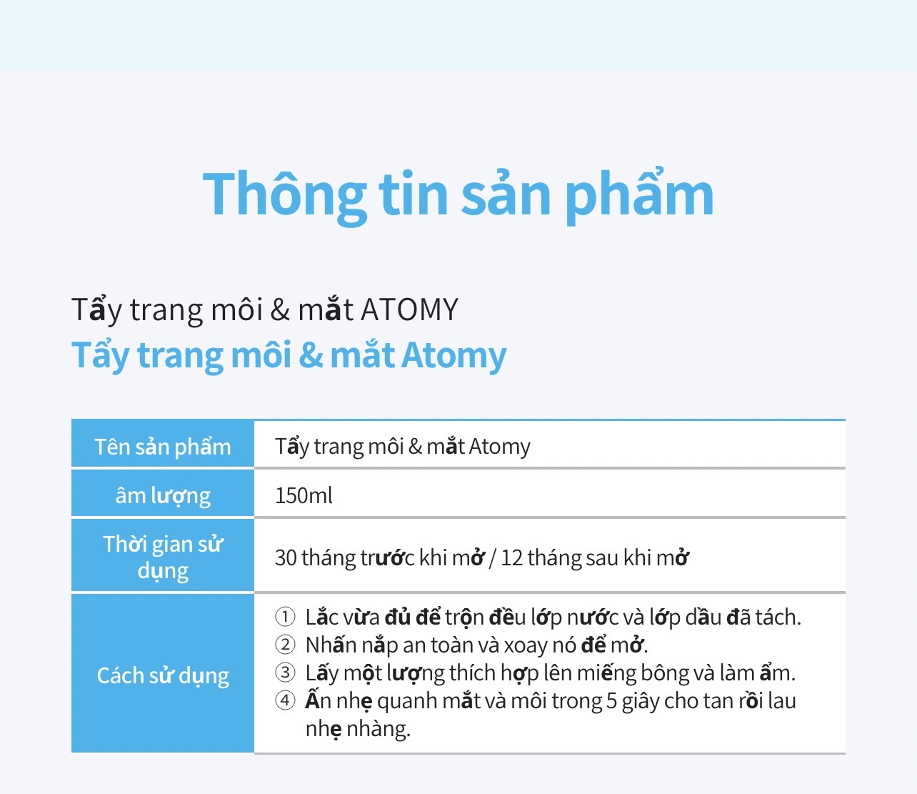 ☑️ Tẩy Trang Mắt & Môi Atomy nhẹ nhàng lấy đi lớp trang điểm mà không gây kích ứng cho vùng mắt và môi.