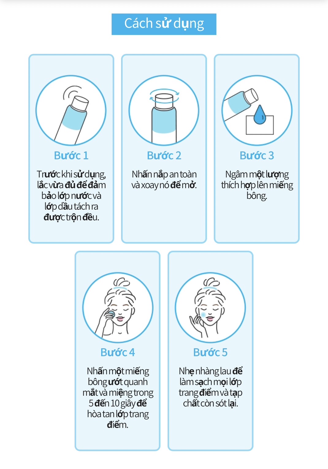 🌐Cách sử dụng: Lắc đều trước khi sử dụng, lấy một lường vừa đủ ra miếng bông tẩy trang sau đó ấn nhẹ lên vùng mắt và môi từ 5 đến 10 giây sẽ lấy sạch lớp trang điểm.