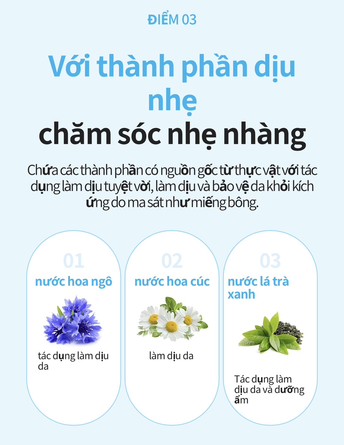 ☑️ Với các thành phần như trà xanh và cúc la mã giúp làm dịu làn da , chống viêm, khách khuẩn, dưỡng ẩm cho làn da sau khi tẩy trang.