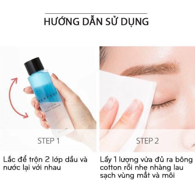 🌐Cách sử dụng: Lắc đều trước khi sử dụng, lấy một lường vừa đủ ra miếng bông tẩy trang sau đó ấn nhẹ lên vùng mắt và môi từ 5 đến 10 giây sẽ lấy sạch lớp trang điểm.