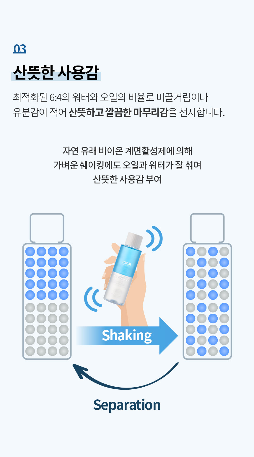 ☑️ Tỷ lệ nước-dầu là 6:4 1 cách tối ưu hóa mang lại cảm giác tươi mát và sạch sẽ, ít trơn bóng và dầu dư thừa.