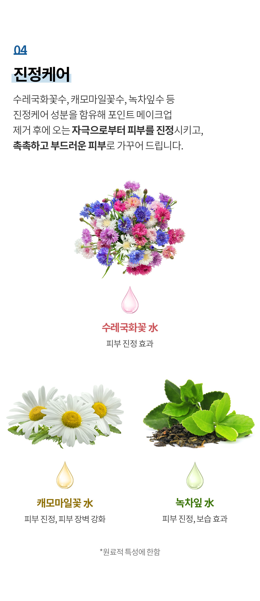☑️ Với các thành phần như trà xanh và cúc la mã giúp làm dịu làn da , chống viêm, khách khuẩn, dưỡng ẩm cho làn da sau khi tẩy trang.