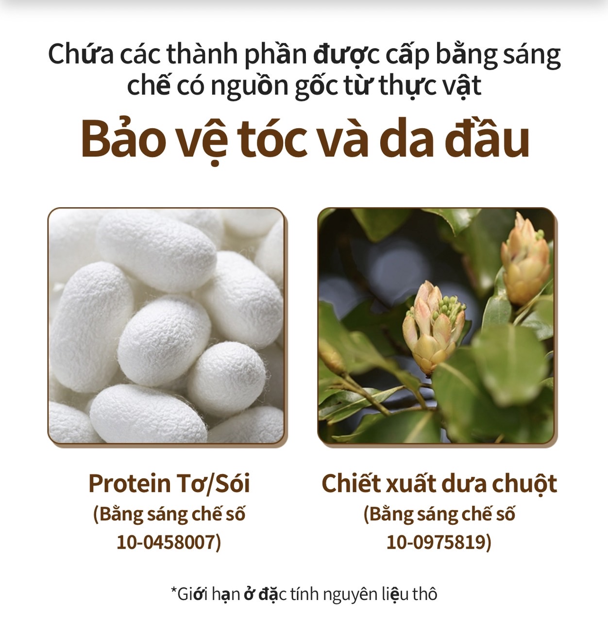 🍁 Thành phần được cấp bằng sáng chế thực vật, bảo vệ tóc và da đầu để giữ cho tóc khỏe mạnh