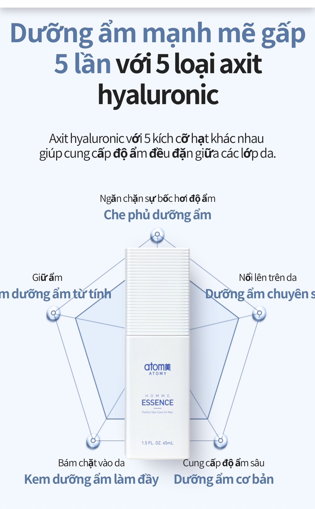 💦 Bổ sung 5 loại axit Hyaluronic dưỡng ẩm mạnh mẽ cho làn da tươi trẻ