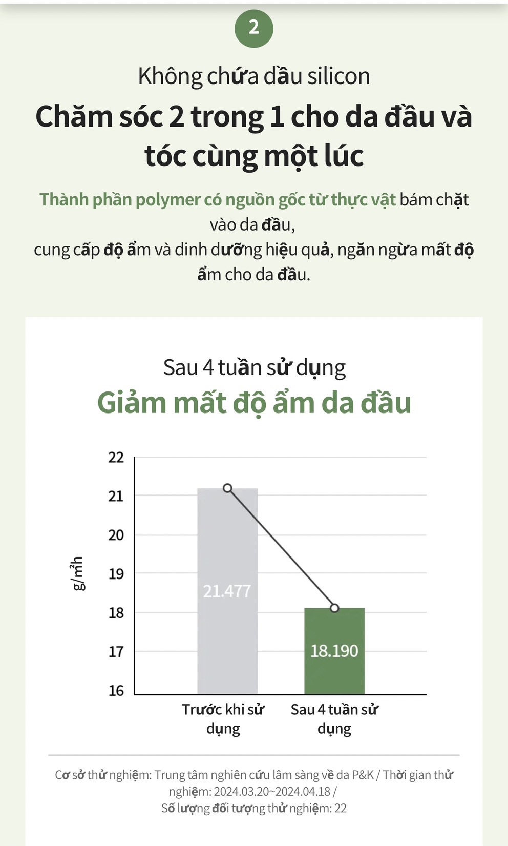 ✅ Giảm tình trạng mất độ ẩm da đầu, cải thiện tóc rối 41% sau 4 tuần sử dụng.
