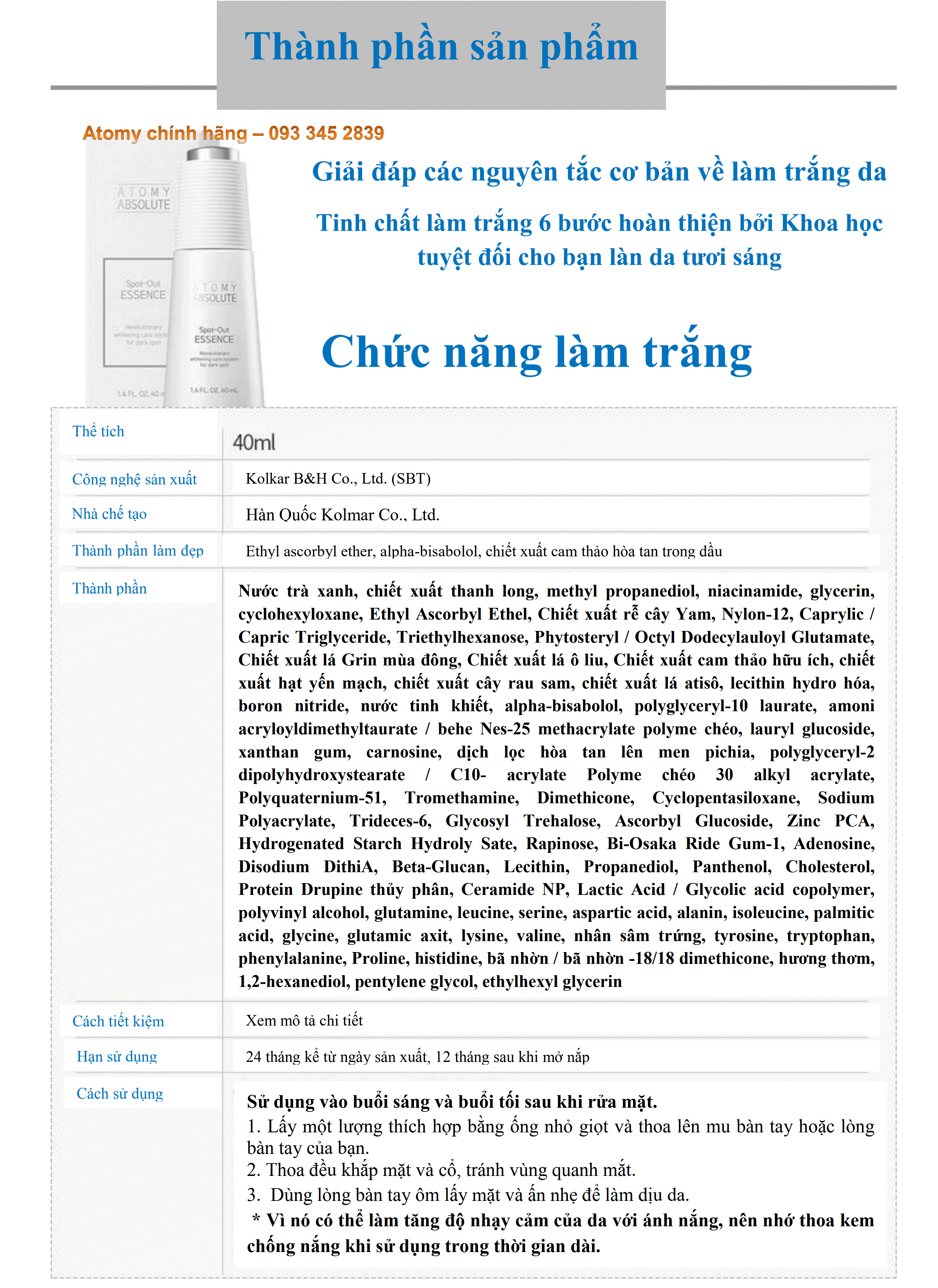 Tinh chất trị nám tuyệt đối Atomy - Atomy Absolute Spot-Out Essence 10:02 20/03/2021 Đăng bởi: Sapo Support Chia sẻ: Nội dung này chưa có bình luận, hãy gửi cho chúng tôi bình luận đầu tiên của bạn. VIẾT BÌNH LUẬN CỦA BẠN: Gửi bình luận