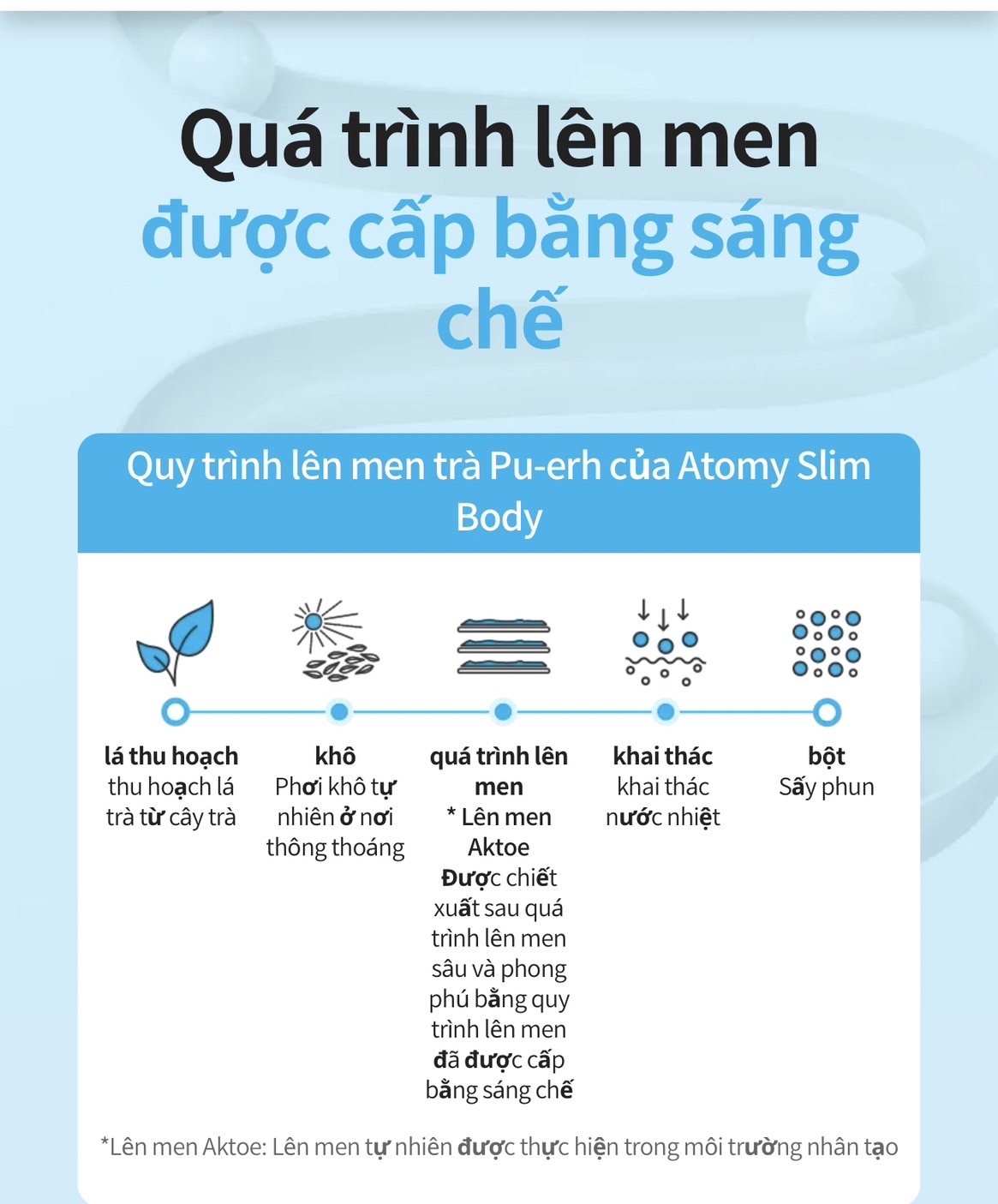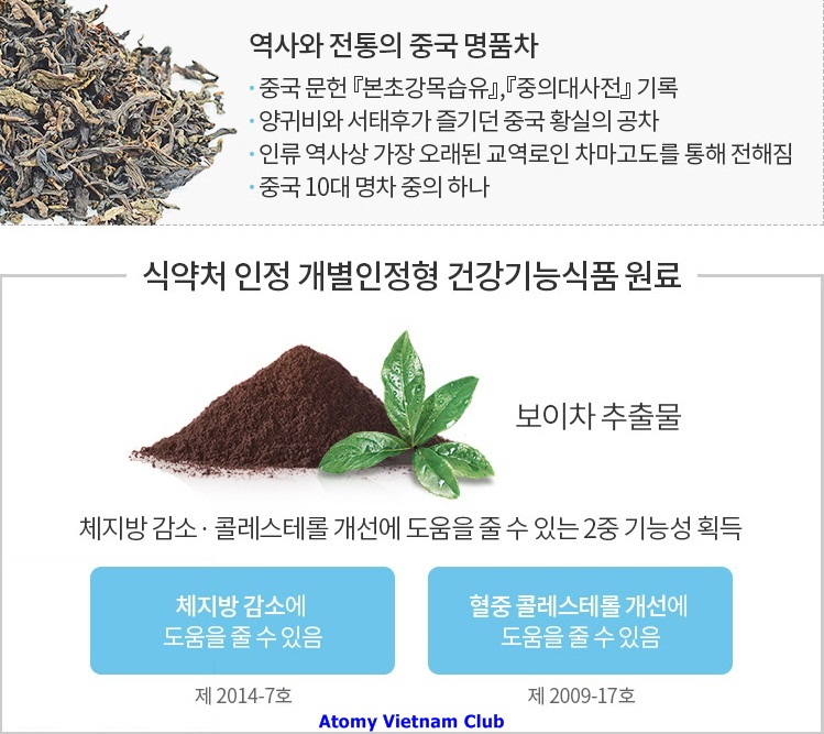 - Ngày nay, với công nghệ lên men vi sinh vật từ lá trà Phổ Nhĩ theo phương pháp cổ truyền Trung Quốc cho ra đời sản phẩm trà Atomy Slim Body Puer Tea chất lượng cao có công dụng giảm cân hiệu quả.