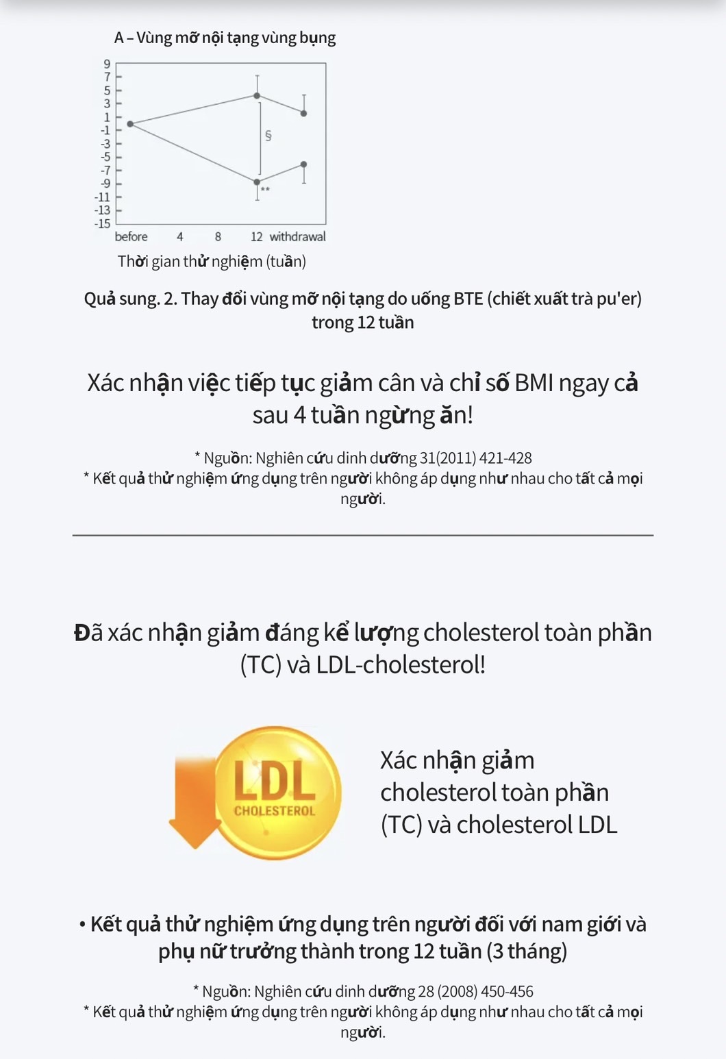 - Chứa chất Flavonoid rất cao, làm giảm choresterol xấu LDL, nó phá huỷ các chất béo trong cơ thể mạnh mẽ. Qua đó, nó cá tác dụng giảm cân 1 cách tự nhiên và an toàn