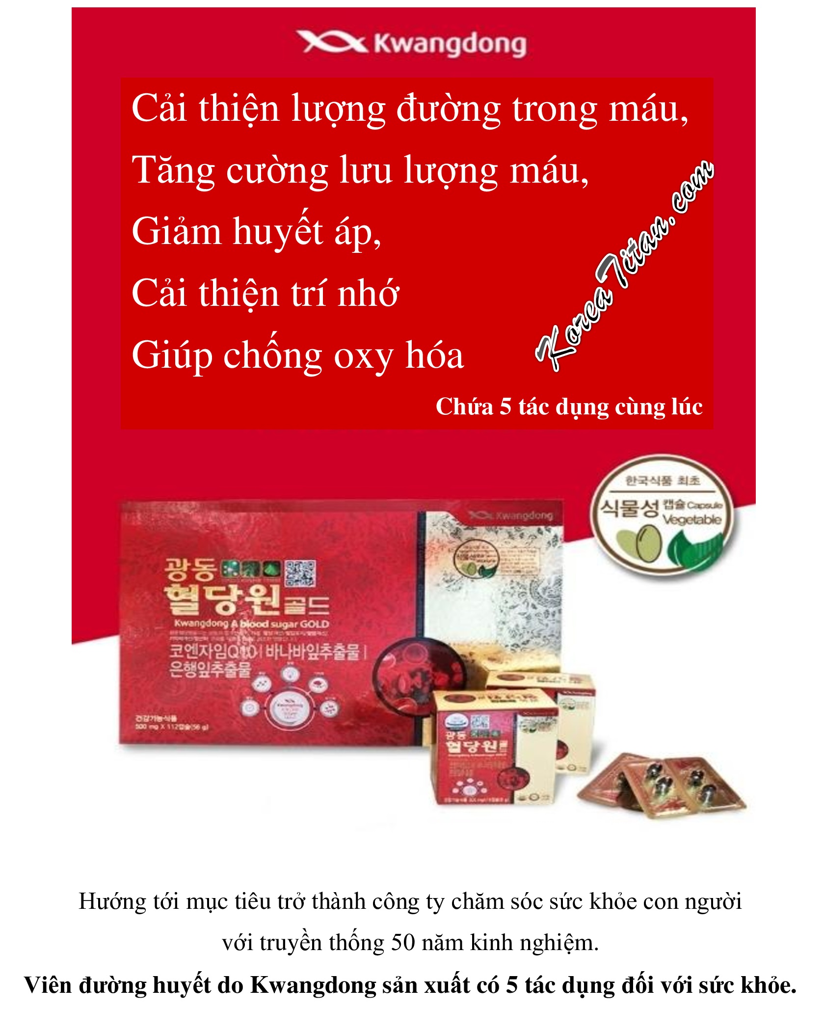 Viên Uống Ổn Định Huyết Áp, Tiểu Đường, Mỡ Máu – Kwangdong A Blood Sugar Gold 112 viên x 500mg: