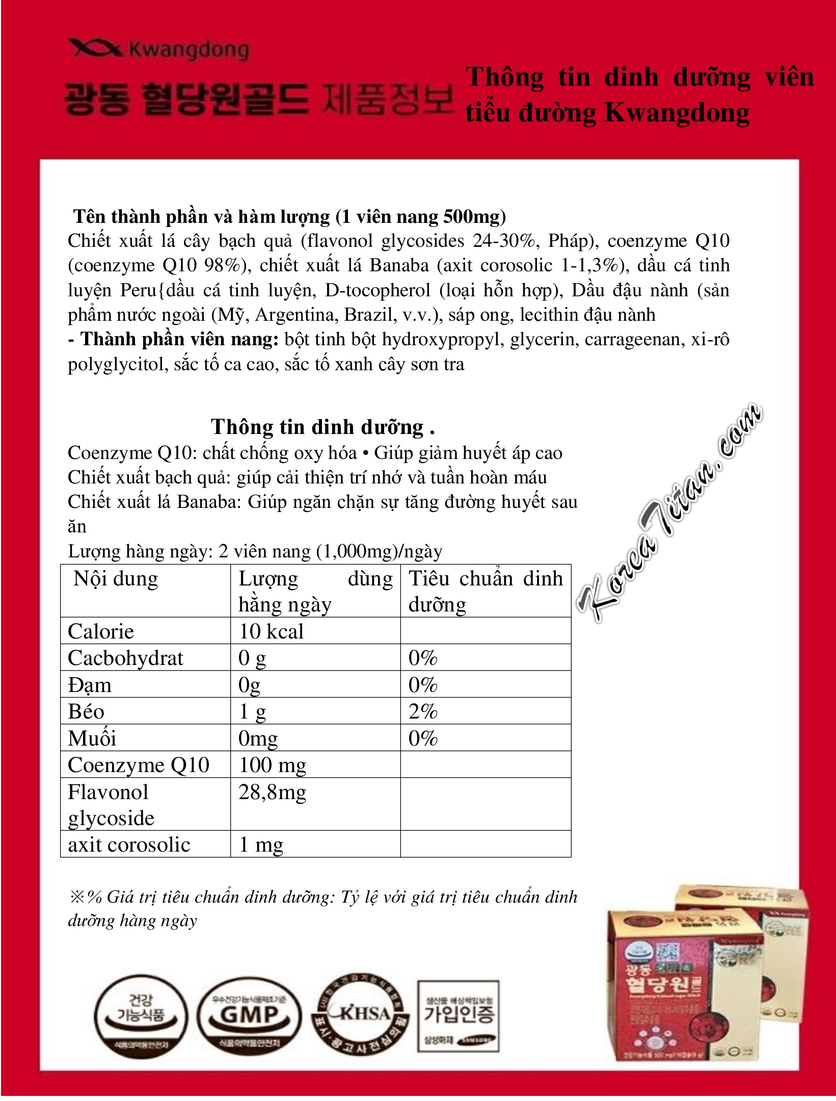 Thành phần chính của Viên uống ổn định huyết áp, tiểu đường, mỡ máu – Kwangdong a blood sugar Gold: