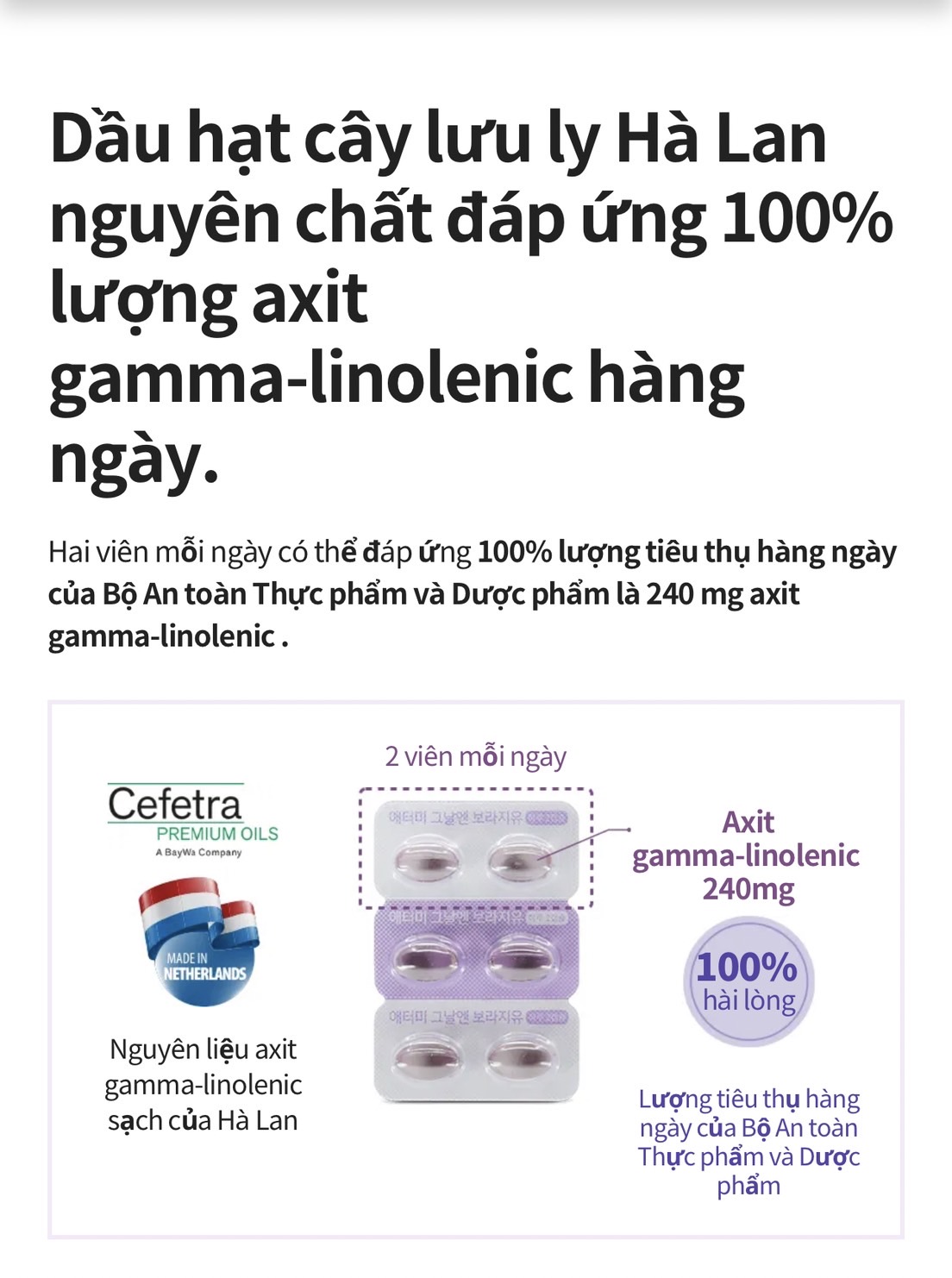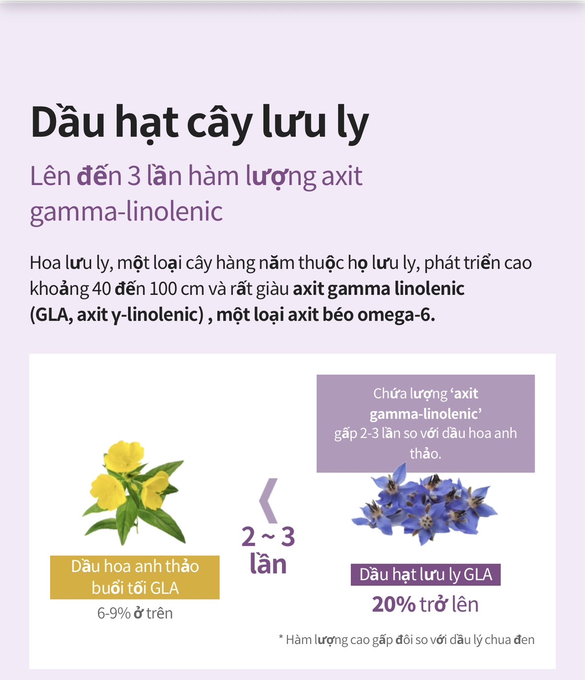 ✅ Được chiết xuất từ hoa lưu ly chất lượng cao Hà Lan có chứa axit gamma-linolenic hàm lượng cao gấp 3 lần hoa anh thảo.