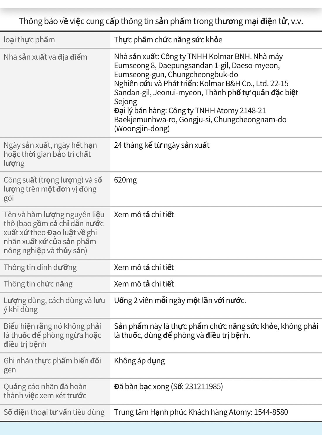 👉 Nhãn hiệu : Atomy, Xuất xứ: Hàn Quốc
