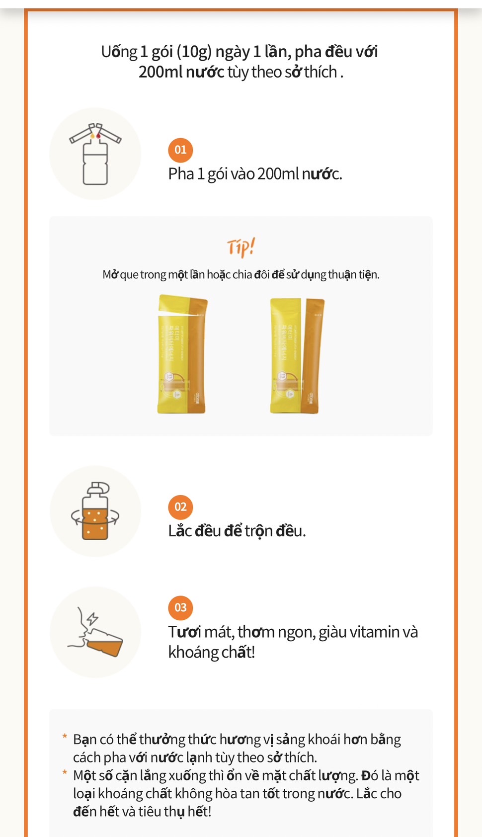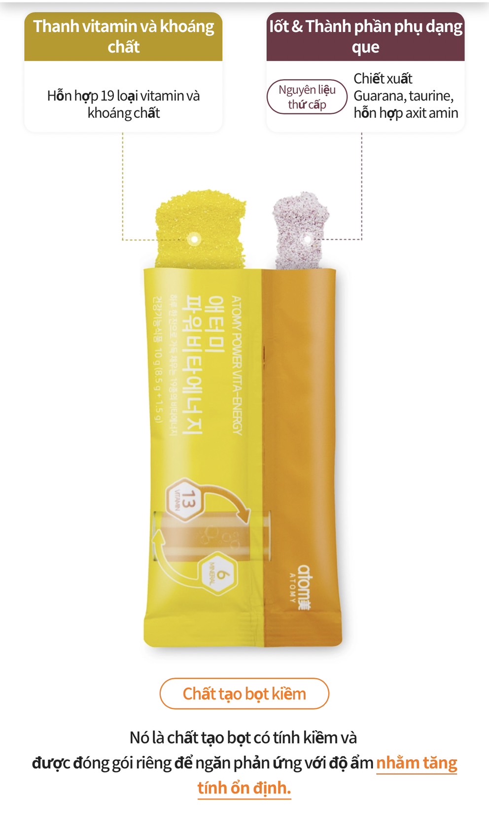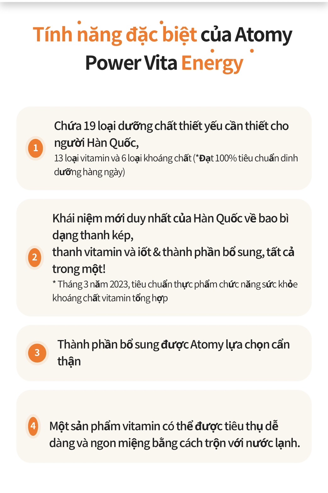 Cung cấp 19 loại dưỡng chất thiết yếu cần thiết cho người Hàn Quốc, 13 loại vitamin, 6 loại khoáng chất (*đáp ứng 100% tiêu chuẩn dinh dưỡng hàng ngày).