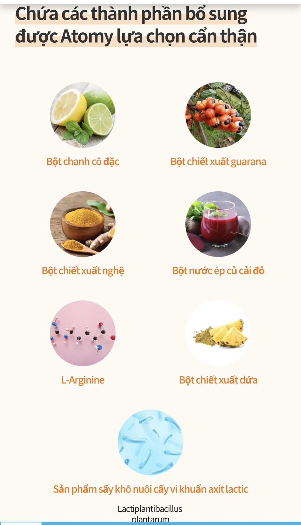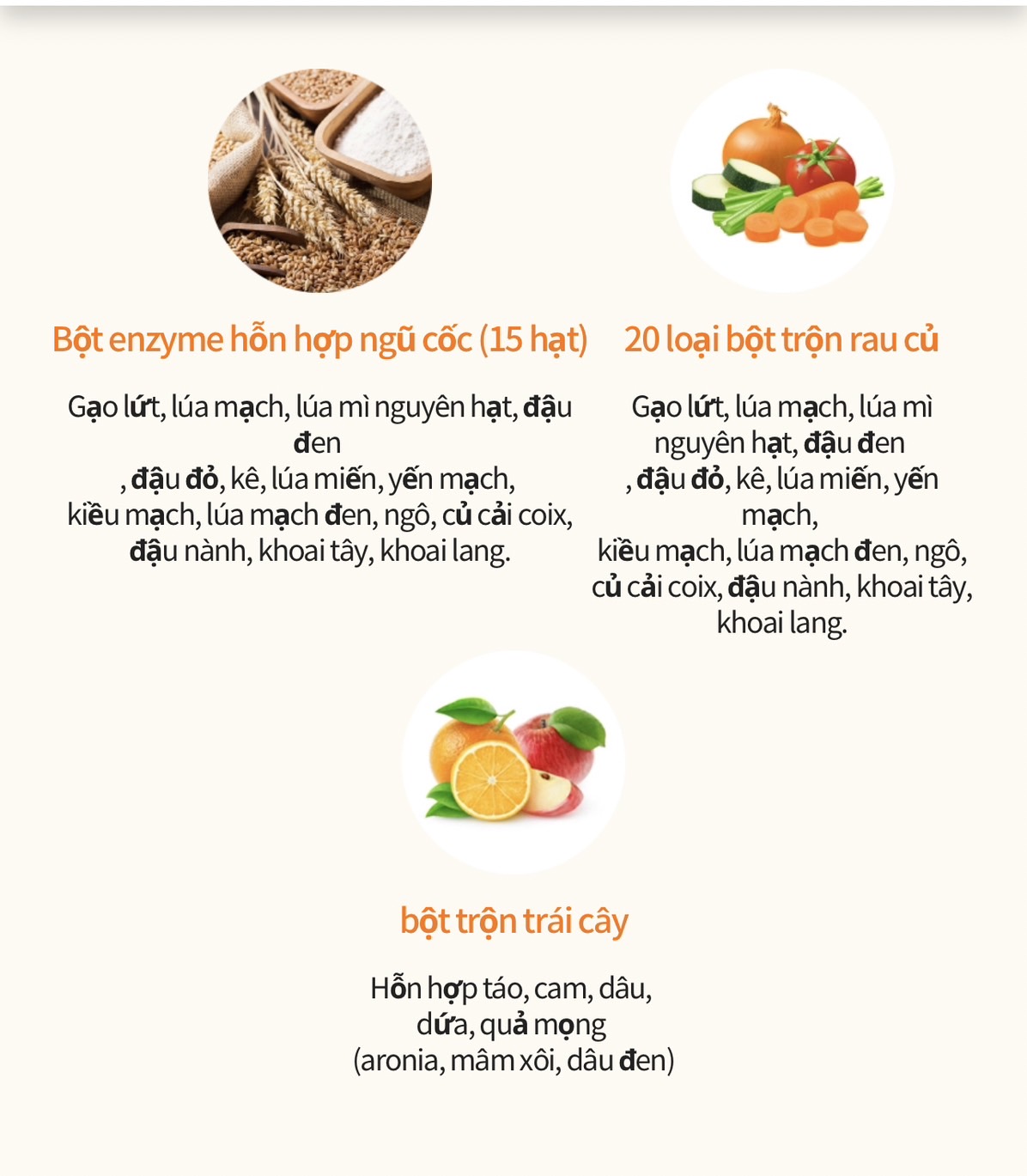 THÀNH PHẦN : Chiết xuất những chất có lợi từ Thực vật thiên nhiên ( Cà rốt, Cà chua, bột nghệ, Khóm V.vv)